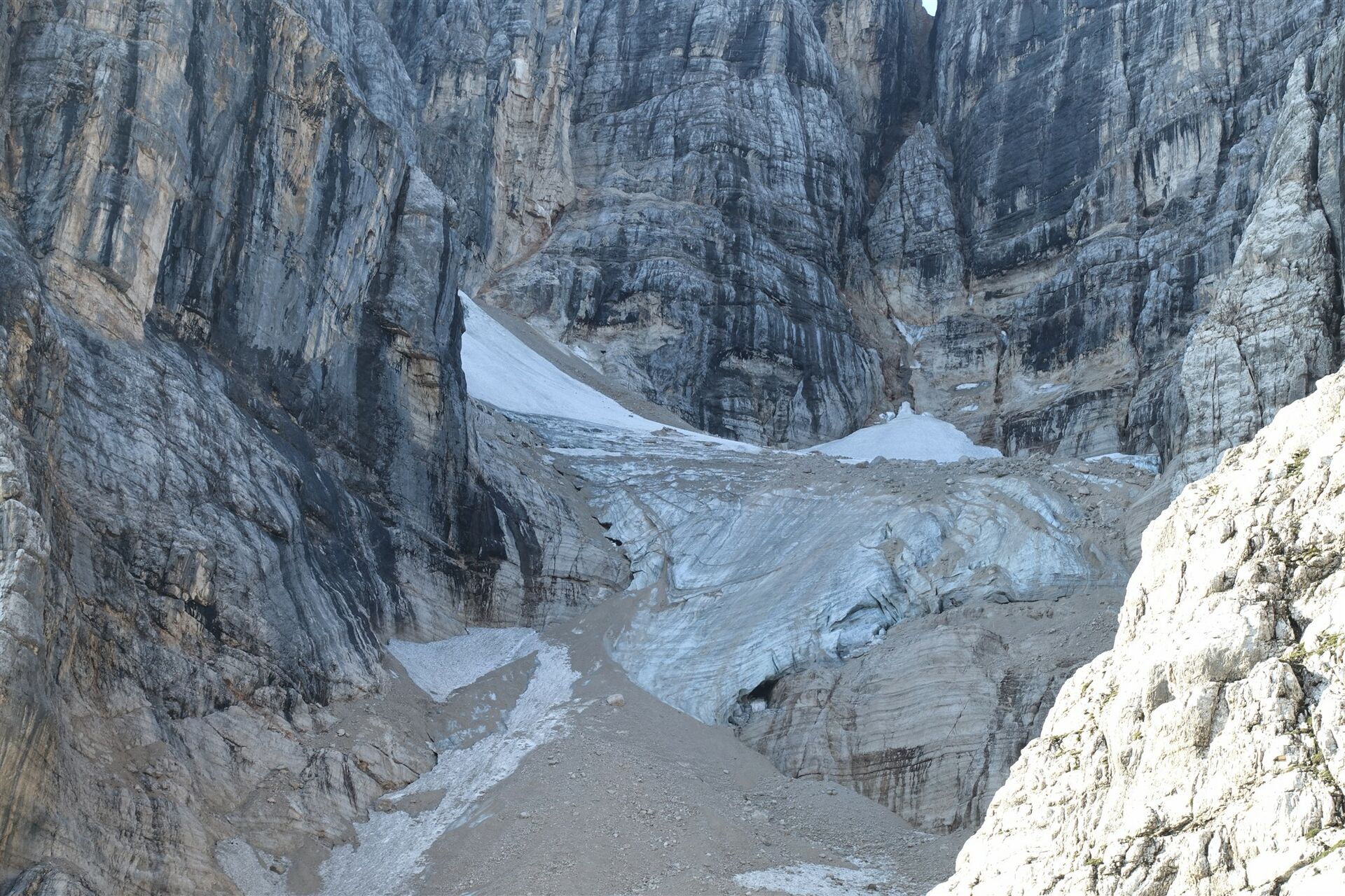Dolomiten-Höhenweg 3 - die spärlichen Überreste des Sorapissgletschers (Ghiacciaio Occidental)