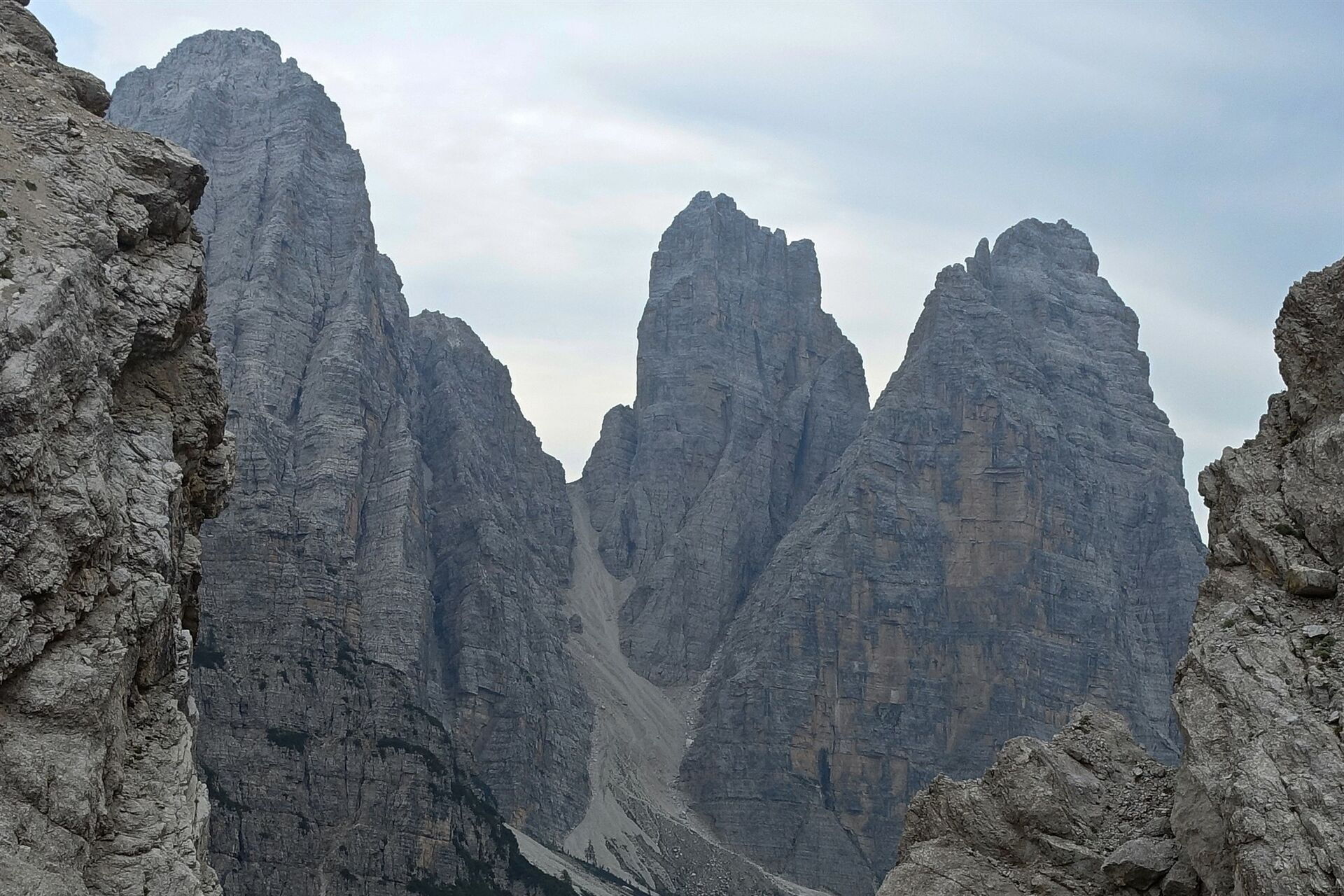 Dolomiten-Höhenweg 3 - von links der 2469 m hohe Sasso di Bosconero der 2430 m hohe Sasso di Toanella und der 2412 m hohe Rocchetta Alta