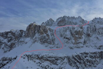Bei schneereichen Wintern eine sensationelle Variante durch ein Tal direkt unter der Marmolada-Seilbahn.