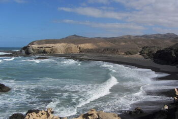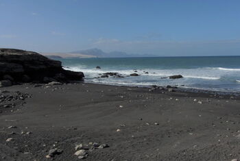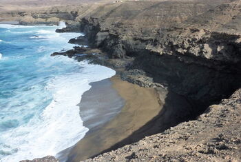 Ein versteckter schwarzer Lavastrand an der wilden Nordwestküste. Achtung: Baden ist hier extrem gefährlich!