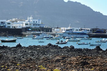 Abendsonne lässt das Famara-Gebirge rot glühen