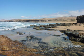 Eine Bucht in absoluter Einsamkeit. Bademöglichkeit nur in den Badebecken, die sich bei Ebbe bilden.