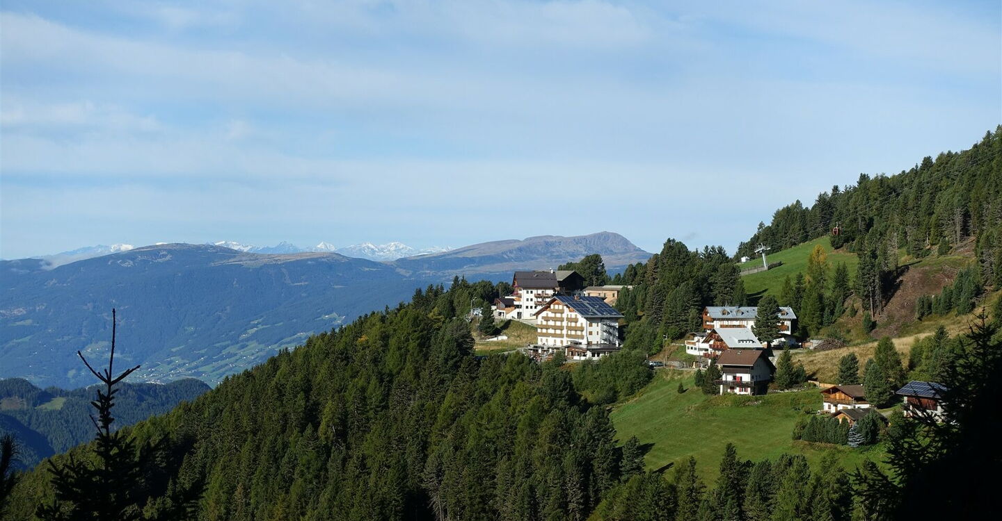 Von der 01 Bushaltestelle Afers (Brixen), Skihütte (1.900 m) nehmen wir den Wanderweg 8 und gehen in nordöstlicher Richtung auf der Forststraße. Bei der ersten Weggabelung folgen wir dem bergauf führenden Ast. Auch die nach rechts abzweigende Piste ignorieren wir und bleiben auf dem Hauptweg.