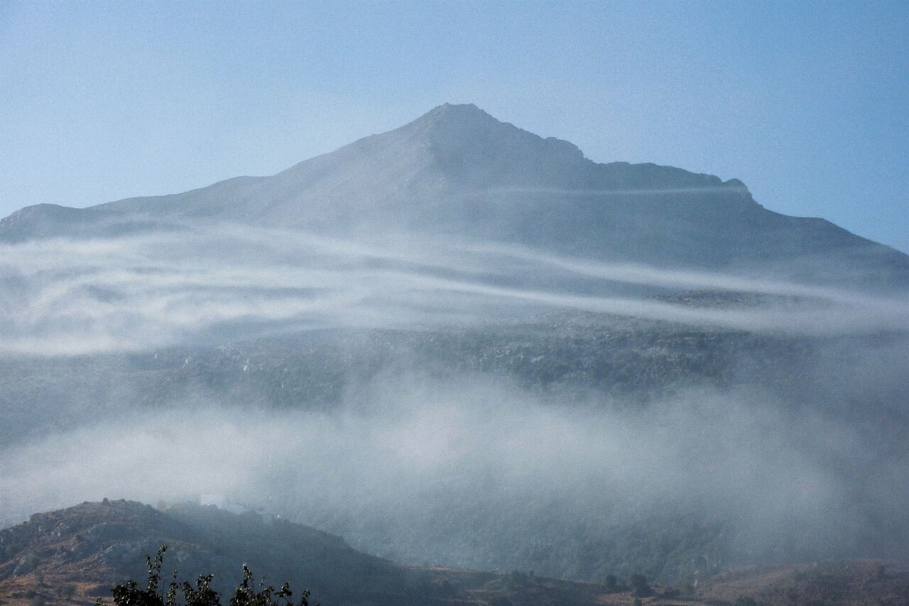 Wir können bereits halb links die Ortschaft Psychro sehen und gehen wieder auf einer Asphaltstraße weiter. Die Straße endet, halb links befindet sich der 02 Abzweiger zur Zeushöhle (809 m), wir gehen rechts weitere 1,2 km auf der Schotterpiste. 170 m hinter einem weißen eingezäunten Haus biegen wir links in die Piste ein, um nach 300 m halb rechts bis zum Ende der Piste durchzugehen. Dort gehen wir links und nach 40 m sofort wieder rechts. Bei einem Wasserhaus mit blauer Tür mündet unser Weg in eine weitere Piste, hier gehen wir fortan halb rechts. Nach weiteren 500 m erreichen wir eine Kreuzung mit einem Stoppschild, wir queren dort die Asphaltstraße. Weiter geht es nun auf einem Feldweg, der zunehmend schlechter wird, bis wir eine Brücke erreichen, zur Straße aufsteigen und dieser weitere 210 m folgen, um dann scharf links abzubiegen.
