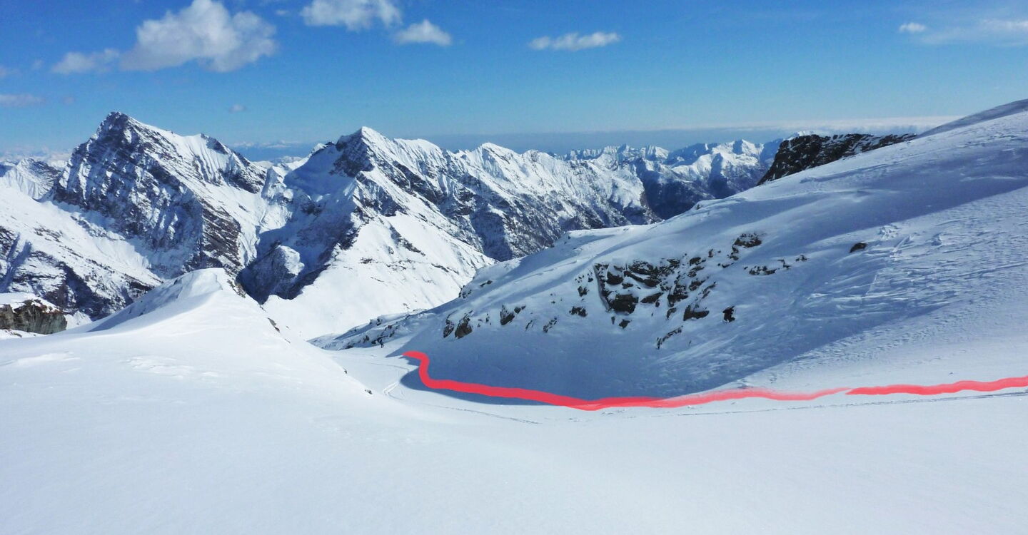 Der Einstieg zum Aufstieg ist nicht leicht zu finden. Sonst ist mithilfe des GPS-Tracks auf der Abfahrt die Orientierung einfach. Die Abfahrt führt über einen Südosthang. Folgende Ausrüstung wird empfohlen: Produkte für alpine Sicherheit im Schnee, Freerideski und Skitourenhelm. Es gibt keine Einkehr auf der Tour. Außer man nimmt vor oder nach der Tour eine Stärkung in dem Rifugio Città di Vigevano. Beste Jahreszeit: Januar bis Mitte März. Uns erwarten kurze Stücke mit bis zu 35° Hangneigung.