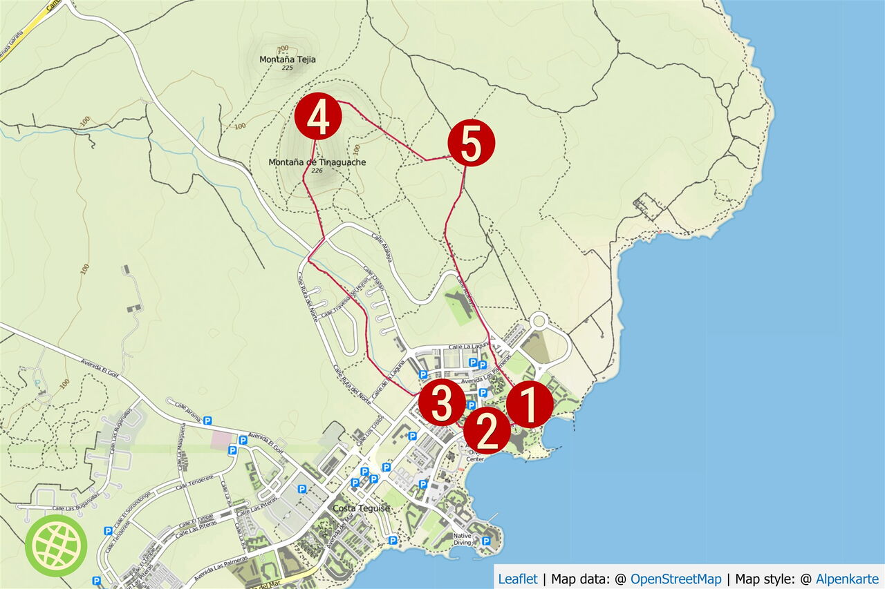 Eine große Anzahl von Abzweigungen und Pfaden ist teilweise verwirrend. Aber alle Wege führen zum Ziel. Wegbeschaffenheit: 10 % Asphaltstraße, 30 % angelegter Weg und 60 % Pfad. Auf der Wanderung gibt es keine Einkehrmöglichkeiten, aber dafür an der Costa TEGUISE zahlreiche Restaurants. Zu jeder Reisezeit kann diese Wanderung unternommen werden.