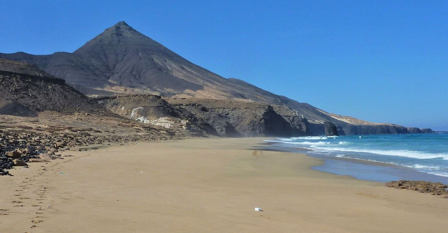 Ohne Frage, die Anfahrt mit dem Pkw hat es in sich. Aber die Belohnung folgt zugleich, ein Strandtag in der absoluten Einsamkeit der Westküste der Jandia-Halbinsel. Über 1,5 km Länge erstreckt sich der feine, hellbraune Sandstrand unterhalb der imposanten, bis zu 800 m hoch aufragenden Felsformationen – den höchsten Erhebungen der Insel. An 80 % aller Tage bläst der Passatwind und befördert die milde Seeluft in die Atemwege. Ein weiteres besonderes Naturschauspiel sind die 36 m hohe, erstarrte Felssäule des Roque de Moro, die vielen Sandsteinobjekte und die Intarsien auf den Felsen. Eine Entdeckungsreise für die ganze Familie.