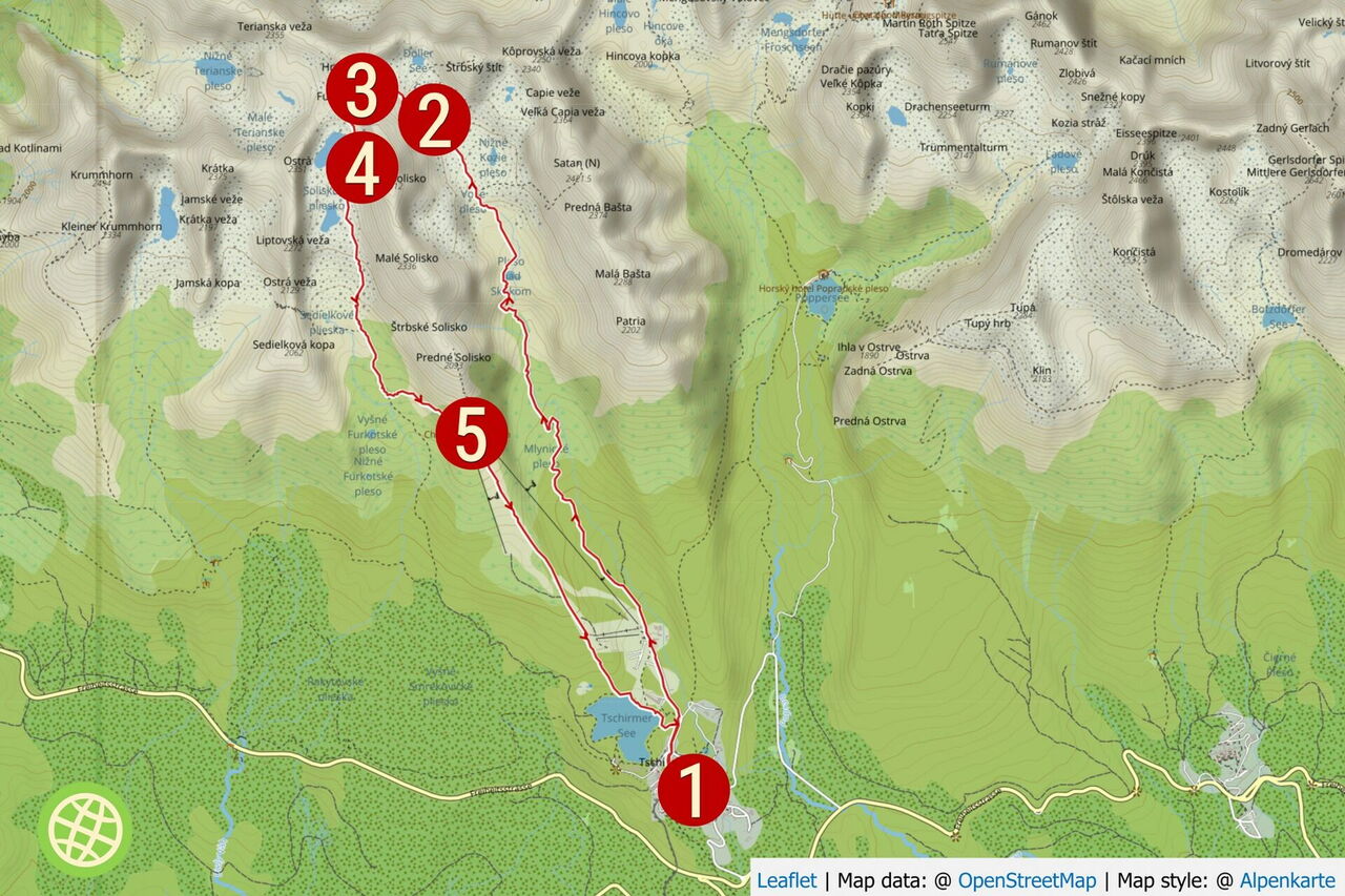 Die Wegbeschreibung vom Bahnhof 01 TEŽ Štrbské Pleso (1322 m) bis zum Pleso nad Skokom (1801 m) findet man unter der Tour 41 bei den Wegpunkten 1 bis 5.
