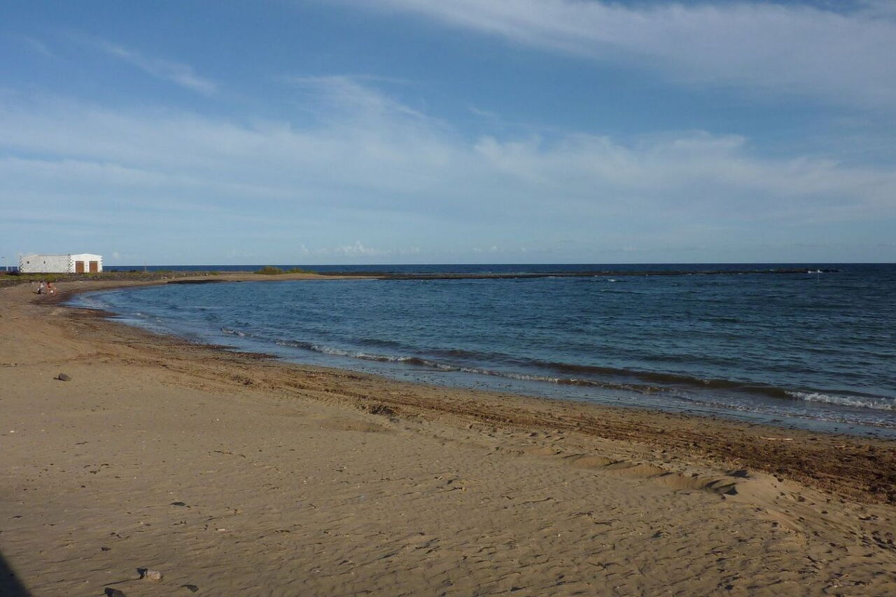 Von dort gehen wir in südliche Richtung zum (02) Playa de Las Salinas (16 m), wo es eine Badegelegenheit und ein Restaurant gibt. Im weiteren Verlauf gehen wir an den Häusern vorbei und weiter bis zum Ende der Straße, um dort auf dem beginnenden Küstenpfad zu wandern. Wir gehen direkt auf die weiße, spitz zulaufende Grundstücksbegrenzungsmauer zu. Bevor wir diese erreichen, gehen wir links ein Stückchen bergab, um dann sofort rechts aufzusteigen und halb links den Weg fortzusetzen. Immer wieder umlaufen wir Barrancos weiträumig. So erreichen wir automatisch auf einem der vielen Pfade die Schotterpiste.