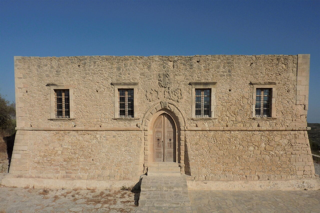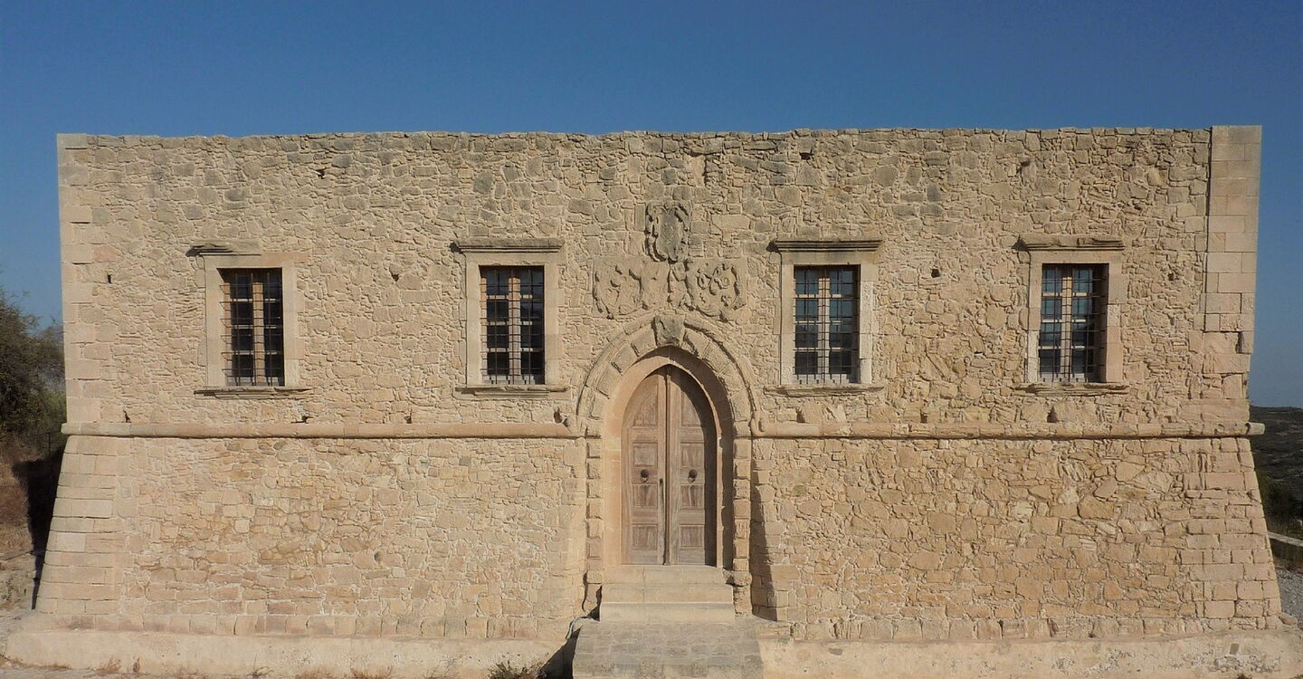 Hier gehen wir rechts in Richtung der Stadt Sitia und erreichen nach 1,3 km die venezianische 02 Villa de Mezzo (522 m) aus dem 15. Jahrhundert. Weiter führt der Weg auf der Hauptstraße. Nach 250 m, kurz hinter einer scharfen Rechtskurve – auf der linken Seite steht ein Haus mit einer weißen Tür –, zweigt links hinunter ein betonierter Weg ab. In der folgenden Senke, bei dem Wasserhaus, steigen wir am gegenüberliegenden Hang wieder auf. Die Piste endet und wir gehen links auf der Schotterpiste, an der Steinmauer vorbei. Nach 300 m gehen wir hinter dem Olivenhain rechts und sofort wieder rechts, ehe wir auf der Piste die Hauptstraße erreichen. Dort gehen wir nur einige Meter links, um dann rechts Richtung Vori abzubiegen. In der folgenden Linkskehre, zwischen Tannen, zweigt rechts ein unscheinbarer Pfad zu dem kleinen Dorf Vori ab.