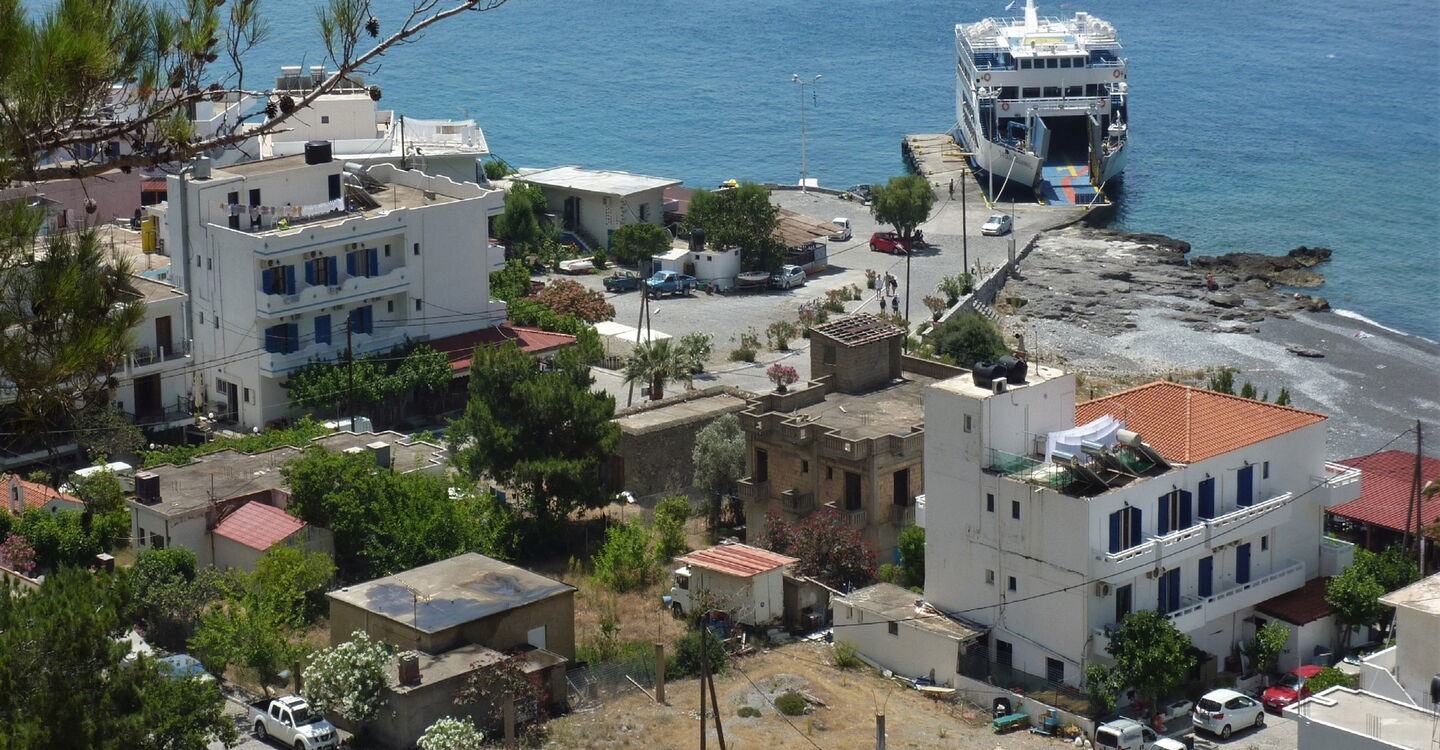 Busverbindung: 5 tägliche Verbindungen von Chora Sfakion nach Chania. Pkw-Anfahrt: Der Fischerort Chora Sfakion liegt an den südöstlichen Ausläufern der Weißen Berge ganz im Süden der Insel am Lybischen Meer, 72 km südöstlich von Chania. Koordinaten Start: 35.200417 24.1382.