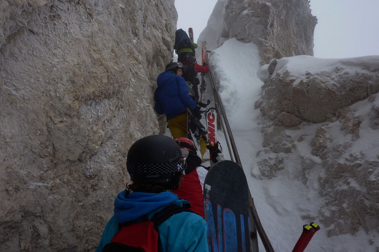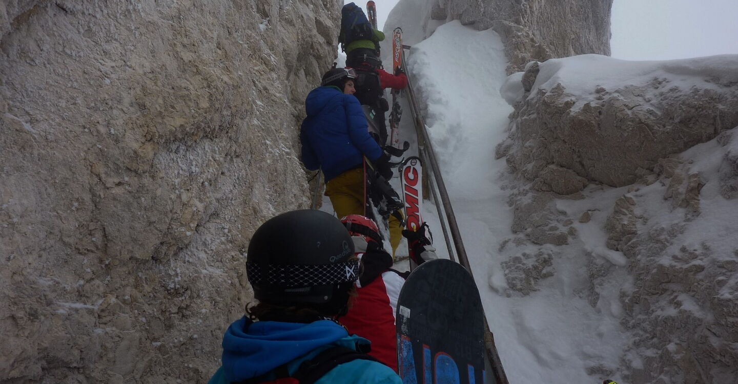 Einfache Orientierung auf der gesamten Strecke. Der Einstieg ist sehr steil! Die Abfahrt führt über einen Nordhang. Folgende Ausrüstung wird empfohlen: Produkte für alpine Sicherheit im Schnee, Freerideski und Skitourenhelm. Es empfiehlt sich die Einkehr in das Rifugio Cimabanche am Ende der Tour. Beste Jahreszeit: Januar bis April. Uns erwarten kurze Stücke mit bis zu 45° Hangneigung.