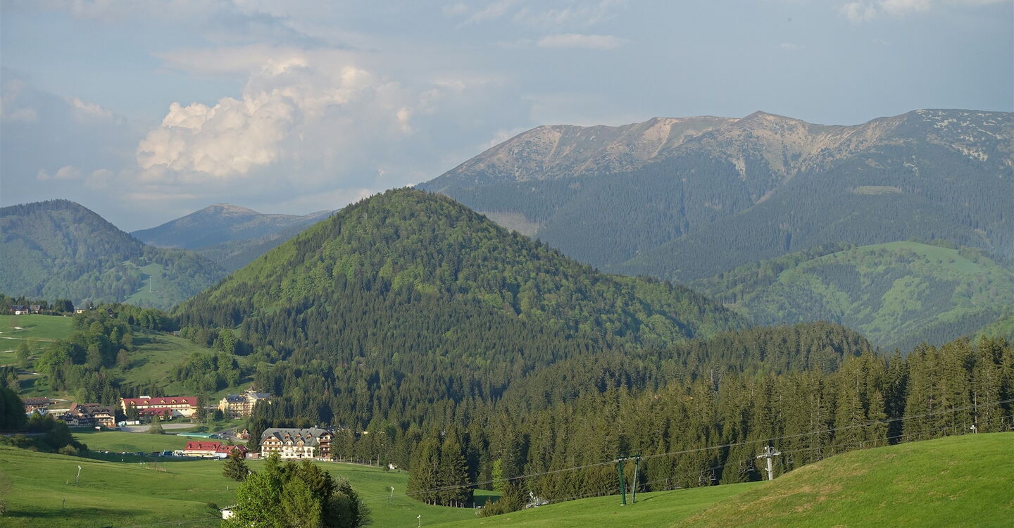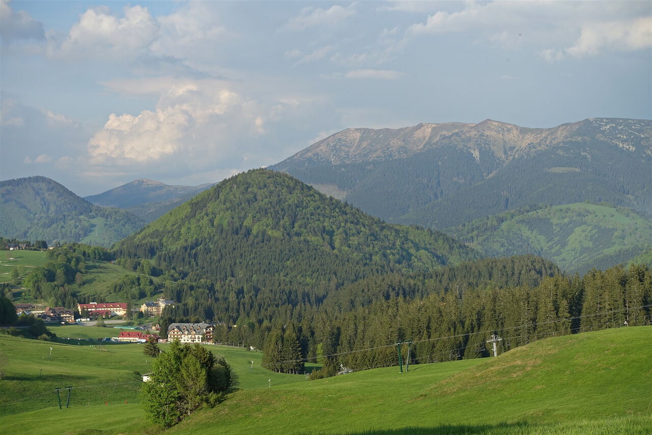 Vom großen Parkplatz in 01 Donovaly (973 m) passieren wir die Brücke über die Bundesstraße und marschieren auf der nachfolgenden Straße in südwestliche Richtung. Auf der Straße, oberhalb mehrerer Lifte, erreichen wir die Ortschaft Polianky. Direkt hinter der 1894 gebauten Kapelle gehen wir bei der Weggabelung halb links, verlassen die Zivilisation und tauchen ein in die Natur.