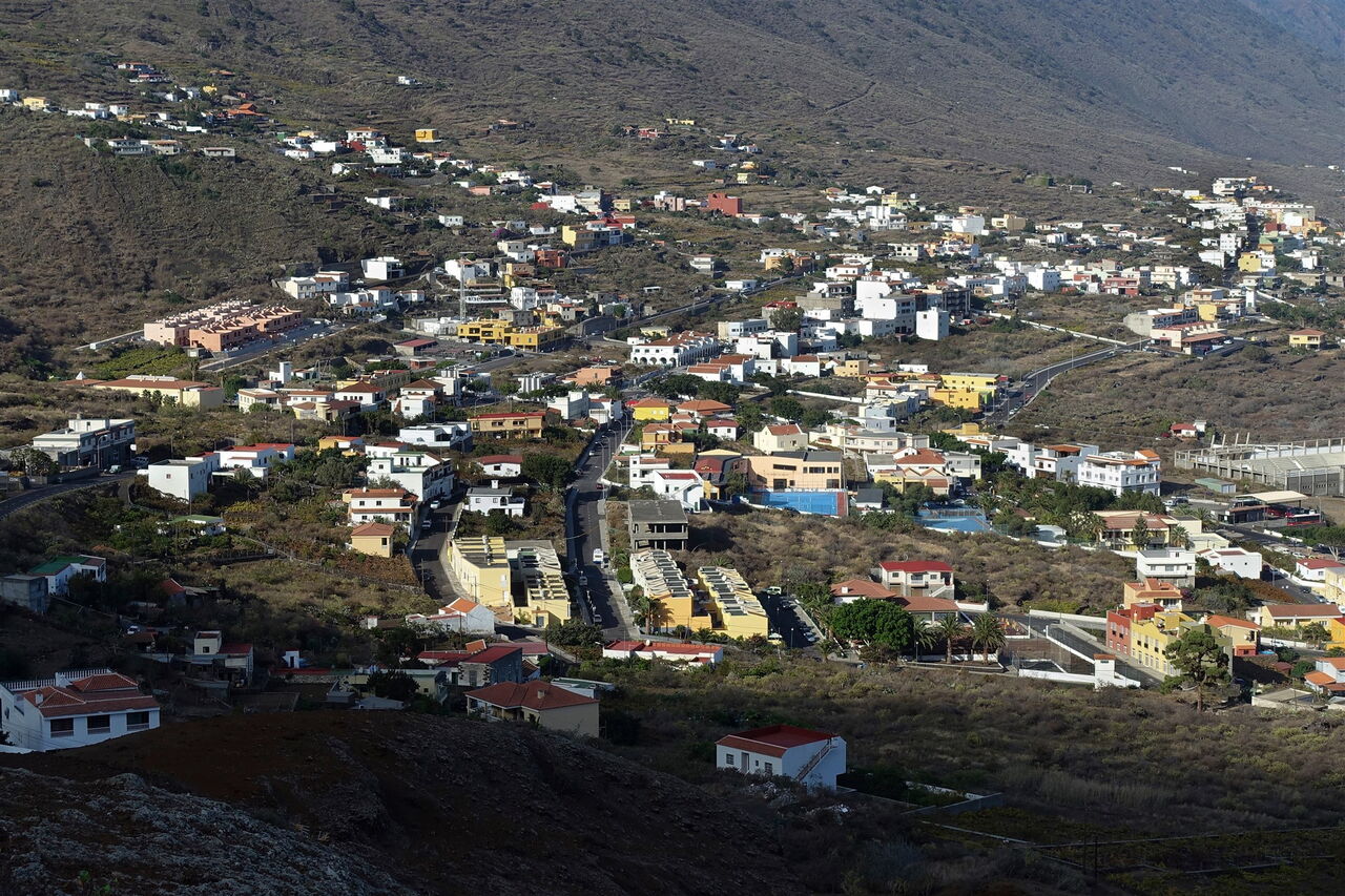 Von der Landzunge am Playa de Los Corrales im Halbrund des (01) El-Golfo-Tals (16 m) steigen wir wieder zur Verbindungsstraße von Las Puntas nach Sabinosa auf und queren diese nach halb rechts, um auf der bergauf führenden Straße entlang von gepflegten Grundstücken bis zu deren Ende aufzusteigen, das sich kurz hinter einem Wasserreservoir befindet.