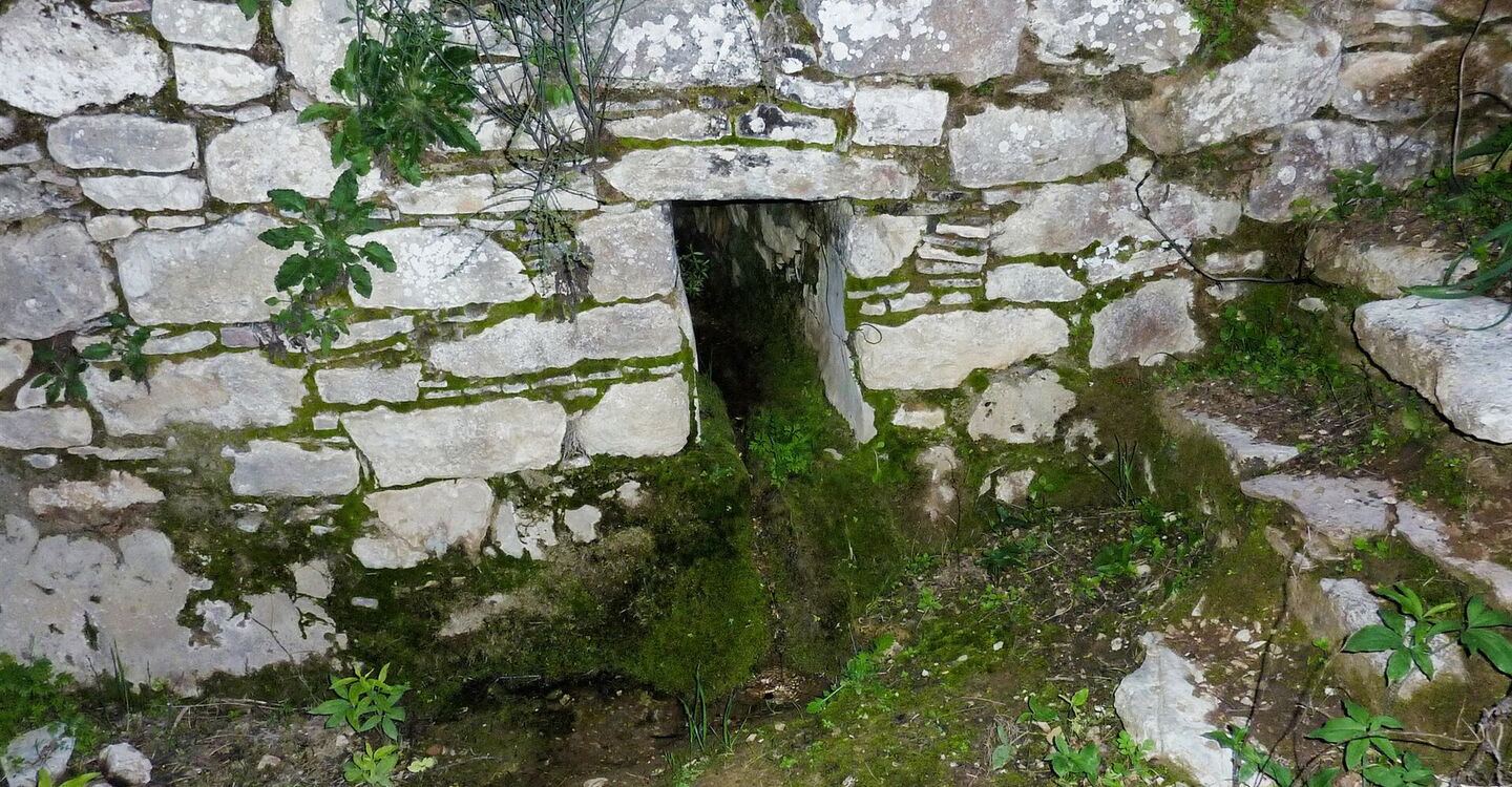 Wir gehen Richtung Embona, biegen aber bei einem Gebetsstock rechts in die Schotterpiste ab. Nach einer langen Linkskehre erreichen wir den weißen, in den Felsen gelassenen Gebetsstock Santa Maria. Direkt dahinter befindet sich ein eigenhändig vom Senior freigelegter Pfad! Es geht durch ein kleines Waldstück und wir passieren einen Olivenhain, bis wir auf der folgenden Schotterpiste links laufen. Die Schotterpiste endet und wir halten uns rechts, durch Felsen, bis wir einen Ziegenzaun passieren und abermals an der Schotterpiste links gehen. Wir erreichen eine Dreiwegegabelung und nehmen den mittleren Weg, um nach nur 40 m ein defektes Wasserauffangbecken sowie eine (05) Quelle (537 m) zu erreichen. Die Quelle hat Trinkwasserqualität! Nach der Erfrischung geht es zurück bis zur 3-Wege-Gabelung. Von nun an folgen wir dem rechten der 3 Wege bis zur Asphaltstraße herunter, auf der wir wieder zum Ausgangspunkt gelangen.