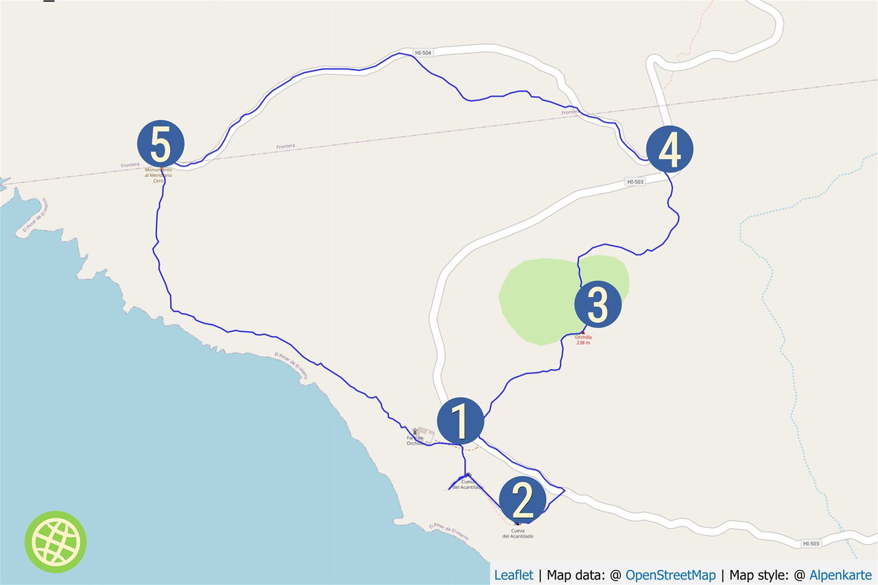 Die einmalige Wanderung beginnt gleich mit einem Paukenschlag, nämlich der Durchquerung eines 400 m langen Lavatunnels. Danach besteigen wir die Montana de Orchilla oberhalb der Punta de la Orchilla. Neben dem Hauptkrater kommen wir an weiteren kleinen Nebenkratern vorbei – ein faszinierendes Farbspiel aus rotbraunem Gestein. Bis 1492 glaubte man, dass der Leuchtturm von Orchilla der westlichste Punkt der bekannten Welt sei, also El Hierro am äußersten Rand der Erdscheibe liege. Der Weg führt außerdem vorbei am Monument des Nullmeridians. 1883 holten die Engländer dann den Nullmeridian nach Greenwich. Eine Wanderung mit vielen außergewöhnlichen Erlebnissen.
