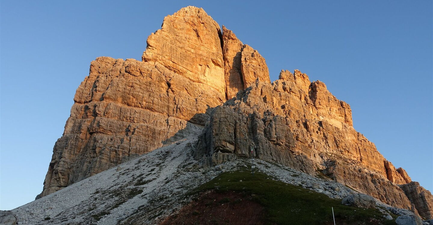 In dem nachfolgenden gerölligen Hochkar führen verschiedene Pfade zum 05 Monte Averau (2.684 m). Der Abstieg zur Forcella Nuvolau erfolgt auf der Aufstiegsroute.