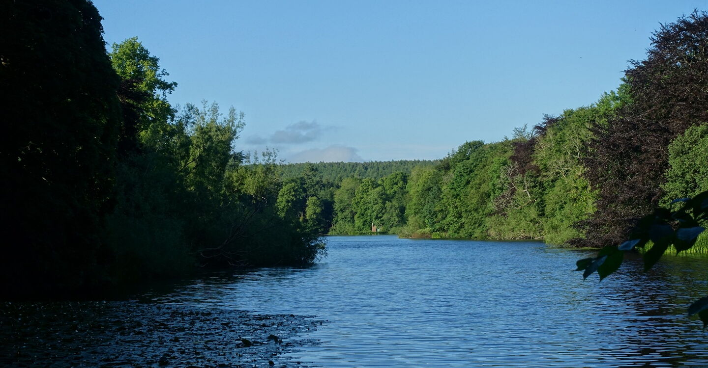 Gut 100 m hinter dem Schlosstor erreichen wir den 02 Loch of Fyvie (60 m) mit seinen Schwänen, Blesshühnern, Stockenten und Teichhühnern. Im Winter gesellen sich noch Graugänse, Reiherenten und Goldenten dazu, mit sehr viel Glück kann man einen Fischadler entdecken. Mächtige Bäume säumen den Pfad links der Straße und farbige Rhododendren sorgen für kontrastreiche Farbtupfer.