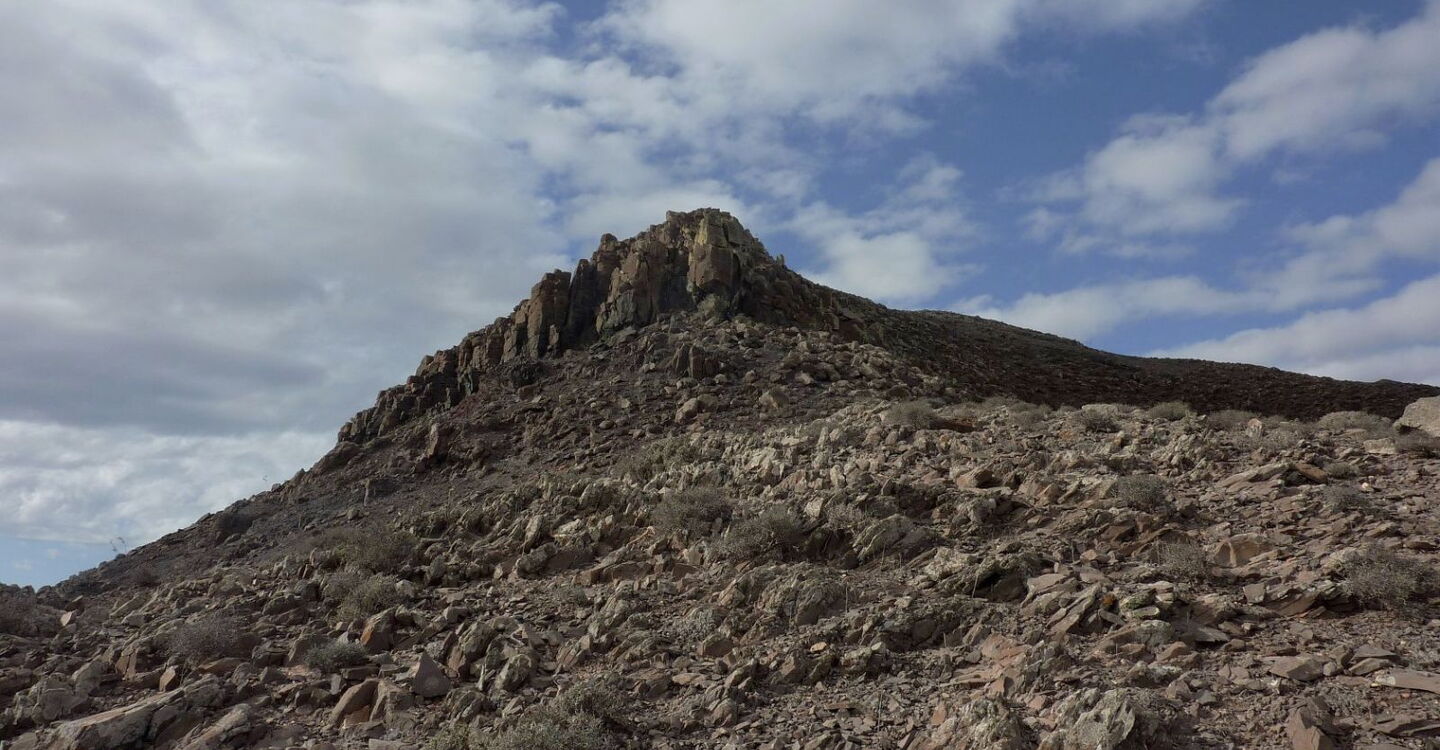 Der Startpunkt unserer Wanderung befindet sich in dem kleinen und verschlafenen Dorf Cardon in der Gemeinde Pájara. Der Ackerbau ist in dieser Region immer noch stark verbreitet. So führt der Weg vorbei an traditionellen Entwässerungsgräben, wo mithilfe von Erdwellen das Regenwasser gestaut wird. Kurz vor dem Gipfel kommt an einer kleinen Kletterstelle Nervenkitzel auf. Vom Gipfel aus ergibt sich ein beeindruckender Blick auf das Naturdenkmal Montana Cardon, den direkten Nachbarn der Gran Montana Hendida. Das Erscheinungsbild des felsigen Gebirgsmassivs ist geprägt durch seine gezackten Oberflächen, die durch Erosion entstanden sind. Nach dem Abstieg vom Gipfel führt ein bequemer Höhenweg zurück zum Ausgangspunkt.