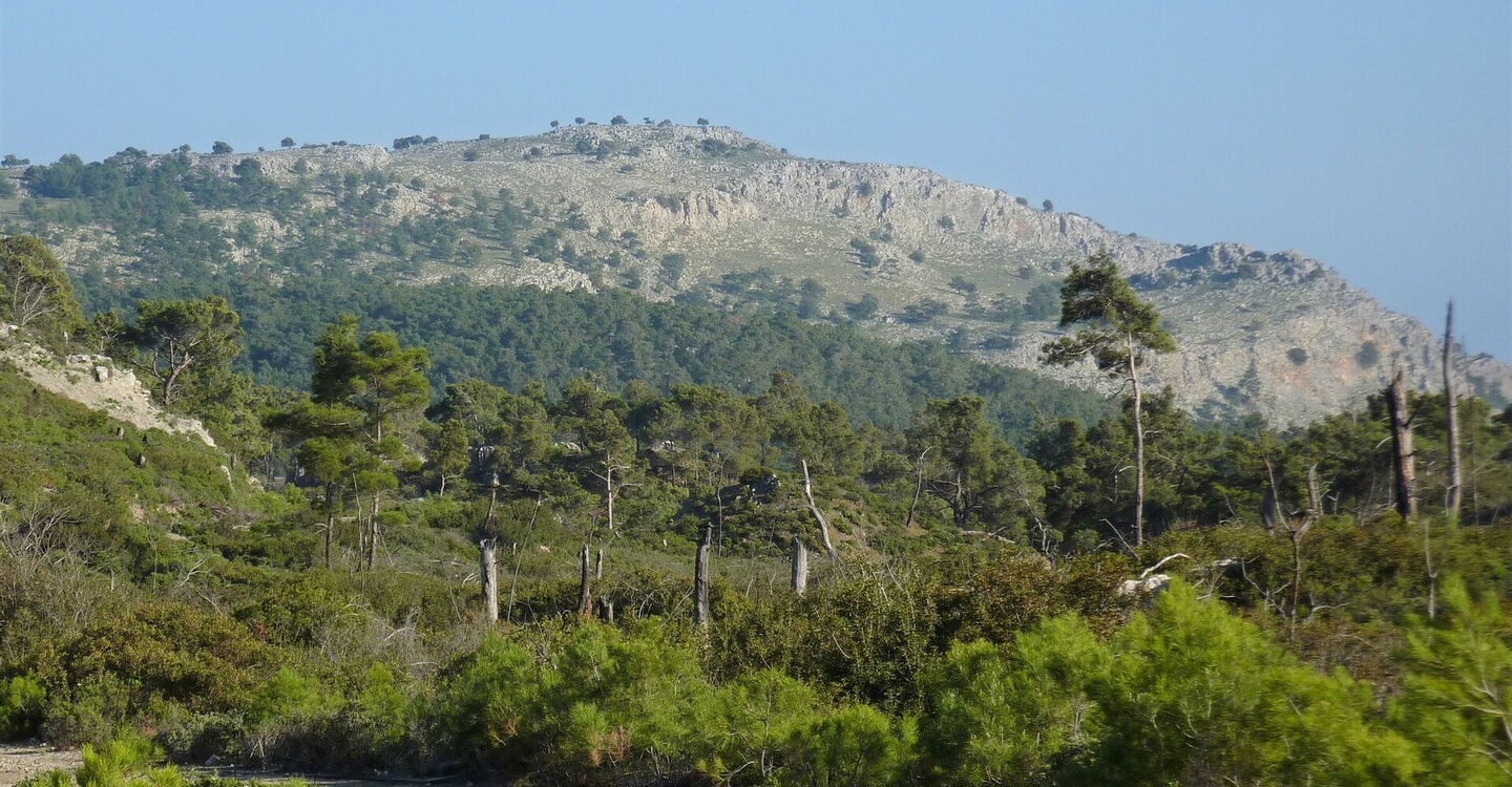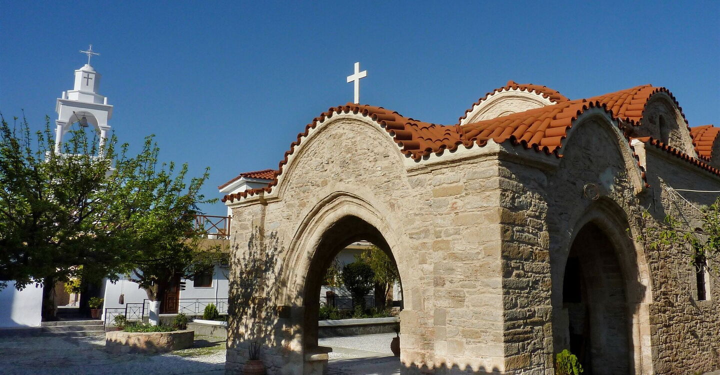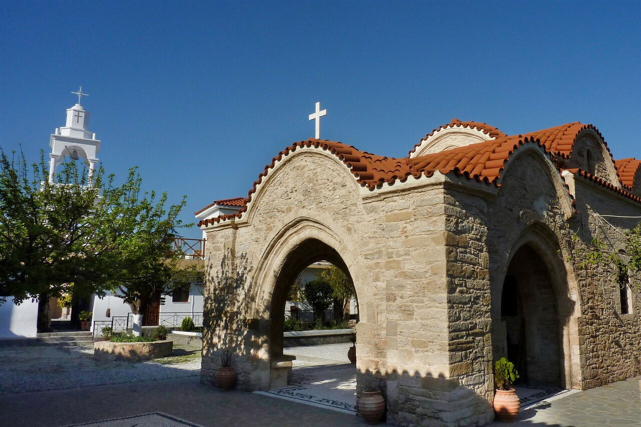 Die Region unterhalb des 292 m hohen Berges Stafilia im Südosten der Insel gehört zu den neueren Feriendomizilen und entwickelt sich in rasender Geschwindigkeit. Kein Wunder, denn die nahezu perfekten Sandstrände von Katsouni und Glystra locken mit kristallklarem Wasser. Am nördlichen Ende der Umgehungsstraße beginnt unsere Wanderung. Es bedarf nur weniger Schritte und wir sind fernab vom Touristenrummel. Der Weg führt durch einen wohlriechenden und in warmen Sommermonaten schattenspendenden Kiefernwald. Das Nonnenkloster Moni Ipsenis liegt idyllisch zwischen Olivenhainen und Kiefernwäldern. Auf Waldwegen geht es wieder zurück.