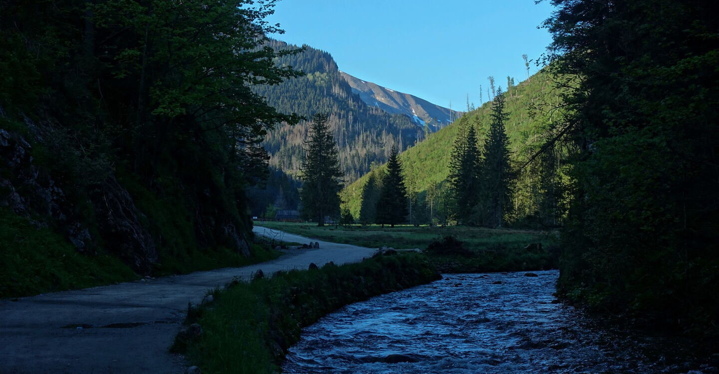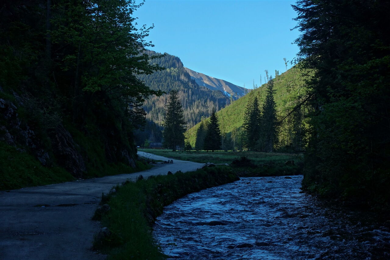 Bei schönem Wetter sieht man, wie sich am Talende der 2248 m hohe Berg Bystrá erhebt (siehe Wanderung 36). Bis Ende Mai sind seine Berghänge mit weißen Firnschneefeldern bedeckt. Den nachfolgenden rechts abzweigenden Pfad lassen wir aus und spazieren an einem Picknickplatz sowie einem Heiligenschrein vorbei. Über eine Brücke queren wir schließlich den Flusslauf 02 Kirowa Woda (996 m).