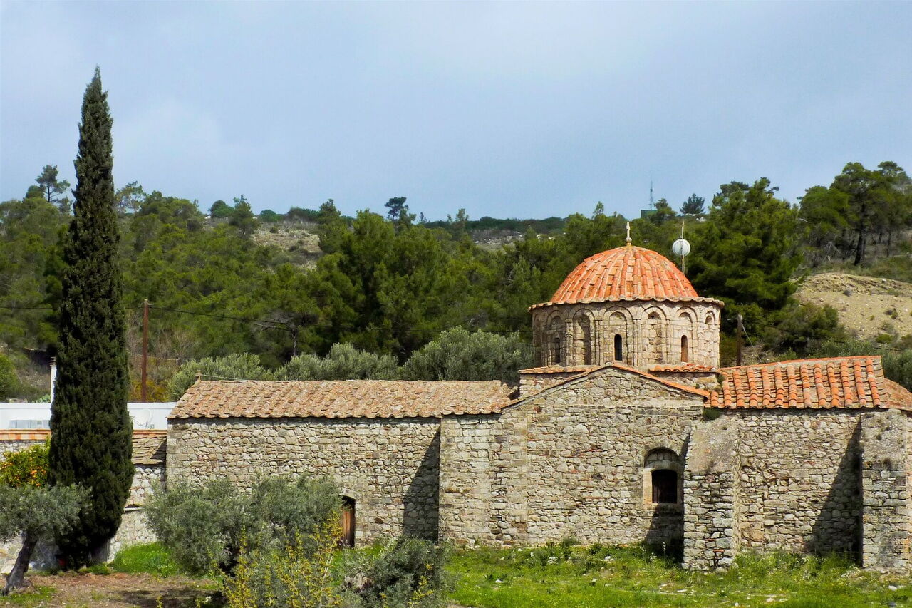 Durch die unberührte Natur von Rhodos führt die Wanderung über einen Bachlauf sowie durch Wälder und Felder zur idyllisch gelegenen Elpida Ranch. Ponys, Pferde, ein Esel und ein kleiner Zoo warten darauf, entdeckt zu werden. Weiter geht es zum sagenumwobenen Kloster Moni Thari. Es wird von einer byzantinischen Prinzessin erzählt, die in der heilenden Natur von einer tödlichen Krankheit geheilt wurde. Als Dank gründete sie im 12. Jahrhundert das Kloster, welches ihren Namen trägt. Zurück geht es auf der wenig befahrenen Asphaltstraße durch Olivenhaine, Eukalyptusbäume, Feigenbäume und an einer Kapelle vorbei.