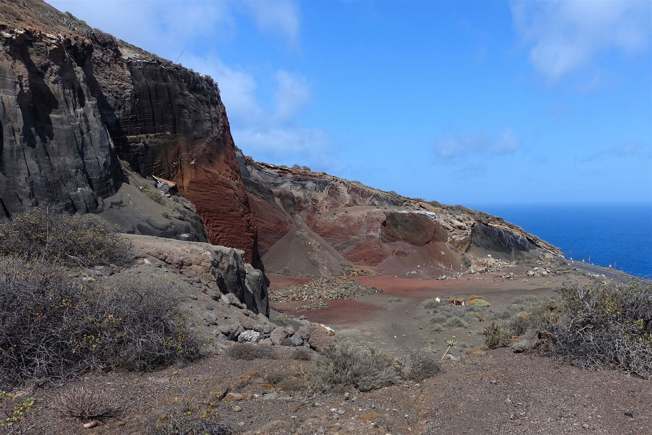 Bei einer weiß-rot-gelben Markierung mündet unser Pfad in den (05) Camino Ancho (416 m), dem wir 500 m bis zur nächsten Weggabelung folgen, um dort nicht halb rechts zum Hafen, sondern halb links weiter Richtung La Caleta abzusteigen. Noch einmal überqueren wir die Hauptstraße, bis wir die ersten Häuser von Caleta erreichen. Wir gehen rechts durch die Linkskehre und erreichen den Parkplatz am Ausgangspunkt.