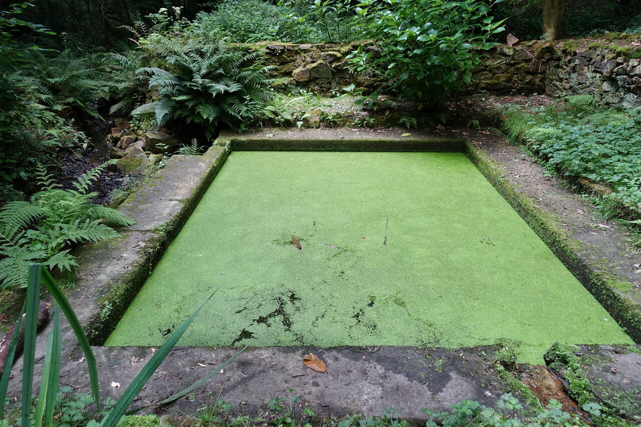 Hinter einem 03 grünen Teich im Wald (79 m) gabelt sich der Weg, hier gehen wir halb links. Einen grünen Wintergarten lassen wir auf der rechten Seite liegen und gehen auf dem Weg weiter, bis er endet. An der darauffolgenden Straße halten wir uns links und gehen bei der nächsten Möglichkeit – hinter der Steinmauer – rechts. Der Pfad durch das Unterholz mündet in einen Wirtschaftsweg, auf dem wir geradeaus weitergehen. Bei einem Steinhaus angekommen, gehen wir links und folgen dem Verlauf der Straße – an einem Kreuz aus Stein vorbei – durch die Ortschaft Kersalic, bis die Straße bei einem Strommast aus Metall endet. Hier gehen wir rechts an der hohen Steinmauer entlang. Den nachfolgenden rechten Abzweiger ignorieren wir, biegen dann aber bei der Hausnummer 17 und dem roten Gartentor links in die Straße ein.