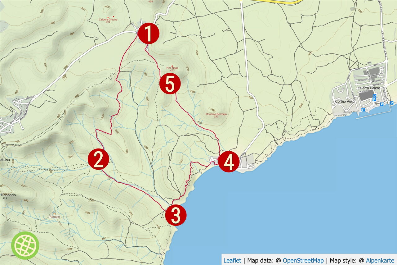 Der Rückweg ist im oberen Teil weglos und erfordert Orientierungssinn. Wegbeschaffenheit: 10 % Schotterpiste und 90 % Pfad. Tipp: Badesachen auf jeden Fall mitnehmen! Einkehr: Restaurant 7 Islas in La Quemada. Die Wanderung kann zu jeder Jahreszeit unternommen werden.