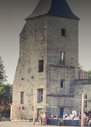 An dieser Stelle gehen wir links und wieder unter der Autobahnbrücke hindurch. Nach dieser 180°-Kehrtwendung befinden wir uns nun auf der anderen Seite des Tals. Nach bereits 20 m biegen wir halb rechts auf den ansteigenden Pfad in den Wald ab. Nachdem wir durch eine Buchenallee gegangen sind und einen See erreicht haben, endet die Straße, links kann man unter Wahrung der Privatsphäre bis zum 04 Le Manoir de la Coquillonnaie (69 m) vorgehen. Das Herrenhaus ist eines der wichtigsten Gebäude der Stadt Tremblay, kann aber nicht besichtigt werden.