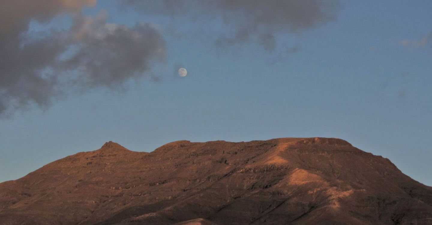 Besteigung eines 492 m hohen Aussichtsberges an der wilden und unberührten Westküste Fuerteventuras. Es ergeben sich gigantische Fernblicke über das Gebirgsmassiv der Montana Cardon, die vorgelagerte Küste und die Dünenlandschaft im Jandia-Naturpark bis hin zu den höchsten Gipfeln von Fuerteventura ganz im Süden der Insel.