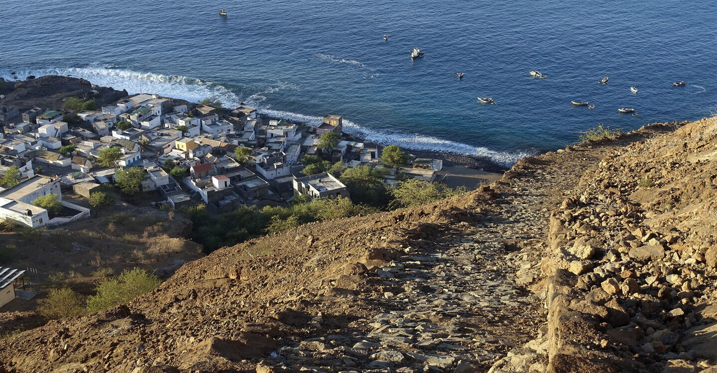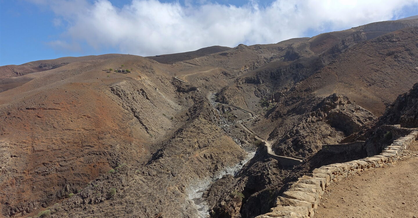 Der zweite Tag der Zweitageswanderung führt durch die am dünnsten besiedelte Region der Insel, ein Telefonnetz wird man vergebens suchen. Auf den ersten 5 km überwindet die Strecke gleich 850 Höhenmeter. Das spektakuläre Landschaftsbild ist geprägt von gigantischen Schluchten, die sich Richtung Meer erstrecken, zerfurchten Berghängen und ockerfarbenen Vulkankegeln. Die wüstenhafte Hochebene ist fast vegetationslos, bis auf wenige Akazien, Purgiernusssträucher und Wolfsmilchgewächse. Das man auf gleicher Höhe, bisweilen sogar über den Wolken, wandert, verleiht der Tour eine besondere Stimmung. Sehr viele Ruinen stehen am Wegesrand, denn durch die lang anhaltenden Trockenperioden sind nur wenige Einheimische geblieben, die einst von der Ziegenzucht lebten. Ein echtes architektonisches Kunstwerk ist der Caminho durch das Ribeira de Azuleiros.