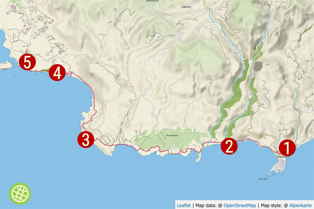 Charakter: Mittelschwere Wanderung auf guten Pfaden und Wegen bei stets eindeutiger Wegführung. Art des Weges: 10 % am Strand, 30 % Asphaltstraße und 60 % Pfade. Zusatzausrüstung: viel Trinkwasser, denn es kann heiß werden. Einkehr: das Restaurant Houmas (km 5,9) und die Taverne Panorama am Ende der Wanderung. Beste Wanderzeit: ganzjährig. Variante: Aufgrund der vielen Naturschönheiten sollte man aus dieser Etappe eine Zweitagestour machen. Kostengünstig und direkt am Weg befinden sich die Iris Studios in 73001 Gialos – GPS-Pkw: 35.233354 23.617479. Wer sein Zelt im Gepäck hat und Selbstverpfleger ist: Freies Campen ist am See von Krios erlaubt – eine absolute Traumbucht!