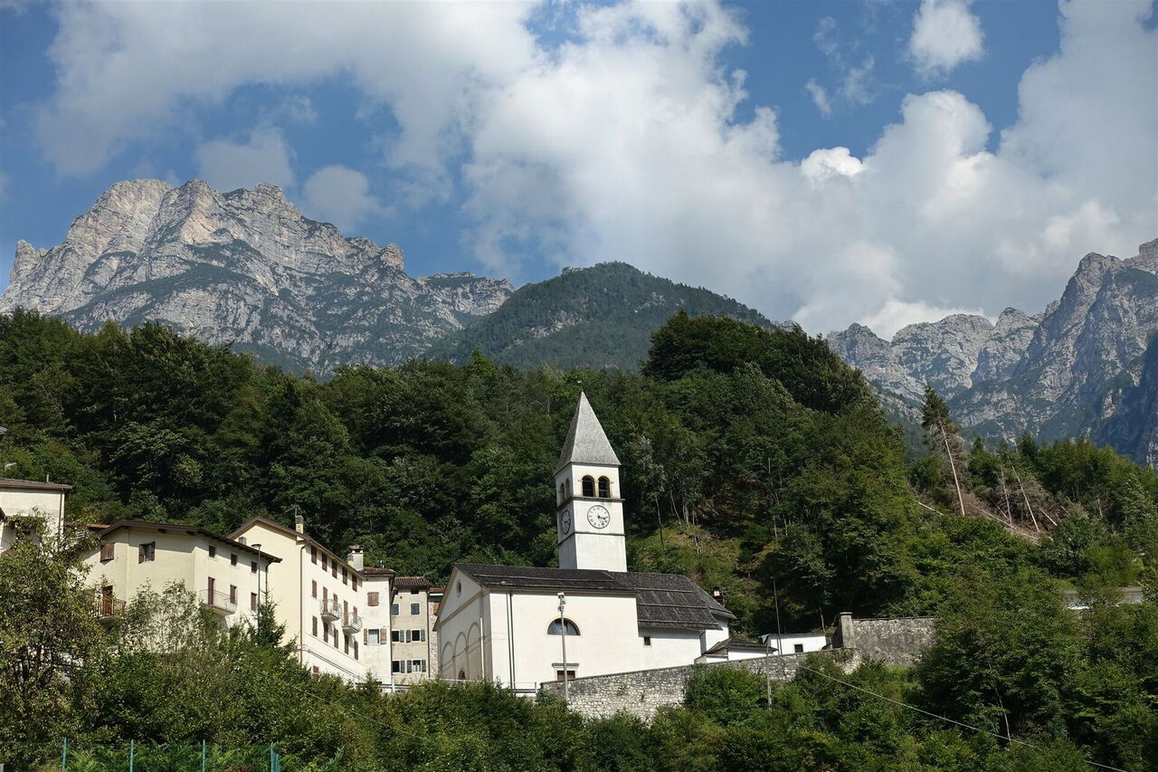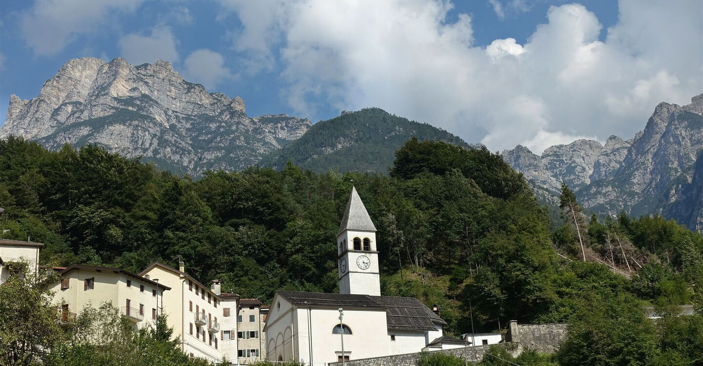 Hinter dem Gebäude der Casera gehen wir rechts und folgen der Schotterpiste durch die lang gezogene Linkskurve. Eine scharf nach links abzweigende Piste ignorieren wir und gehen nun kontinuierlich durch das Valle di Valbona bergab. Bei einer Parkbucht ignorieren wir die nach links abzweigende Stichstraße. Schlüsselstelle: Ca. 325 m hinter einem Haus, oder ca. 15 m vor einer Leitplanke, zweigt nach rechts ein unscheinbarer Pfad ab. Er führt über einen Bergrücken talwärts und endet an einem weiteren Pfad, dem wir rechts bergab bis ins Dorf folgen. Dort gehen wir in Kehren bis zum Unterdorf von 05 Ospitale di Cadore (480 m), um dann auf der Hauptstraße nach links zu gehen und ca. 50 m vor dem Kreisverkehr die Bushaltestelle zu erreichen.