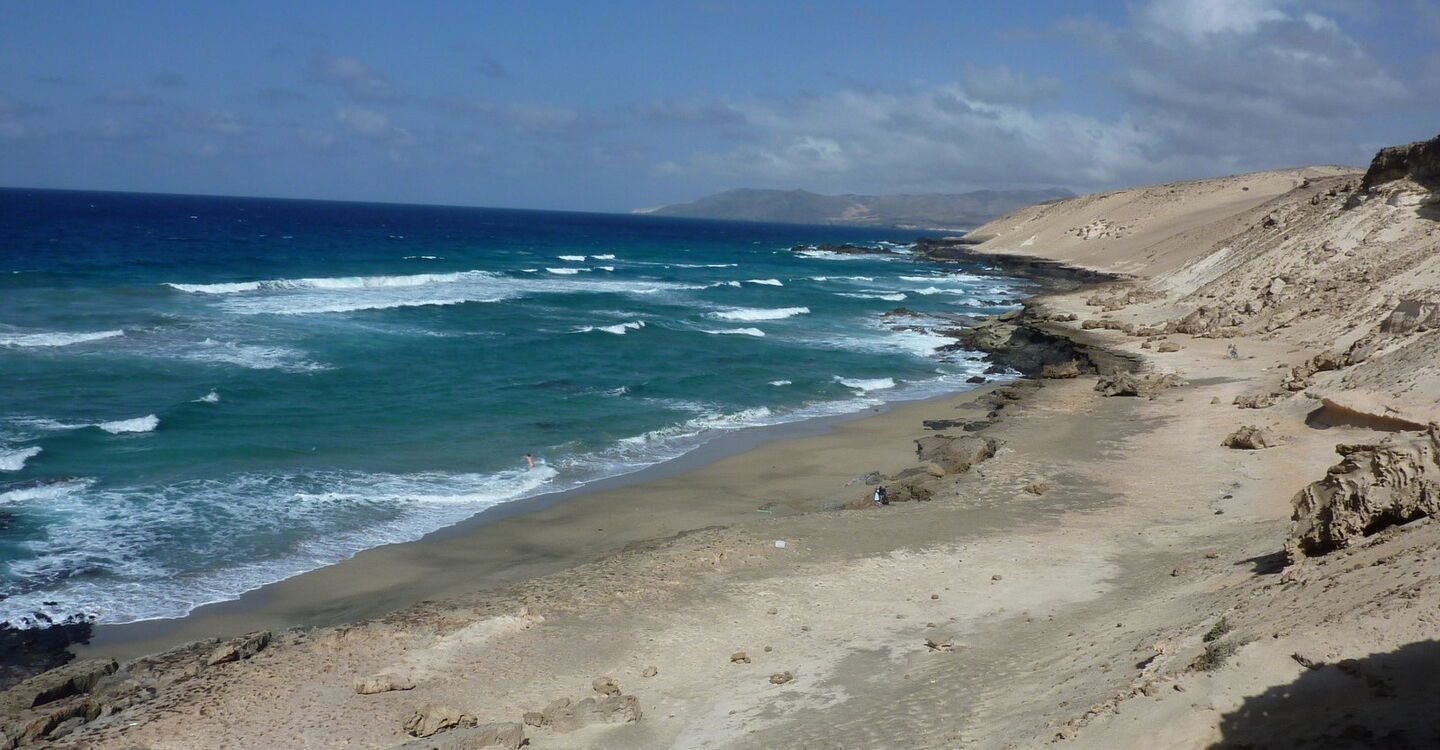 Einfacher Spaziergang durch die Dünenlandschaft des Nationalparks Jandia an der Nordwestküste. Art des Weges: Die Anfahrt erfolgt auf einer Asphaltstraße. Die Wanderung führt über Sanddünen. Es empfiehlt sich, genügend Verpflegung für einen Tagesausflug einzupacken. An der Costa Calma gibt es zahlreiche Restaurants, die sich zur Einkehr anbieten. Diese Tour kann man das ganze Jahr über machen. Interessantes: Das Ziel der Wanderung ist ein Traumstrand, der zum Verweilen einlädt.