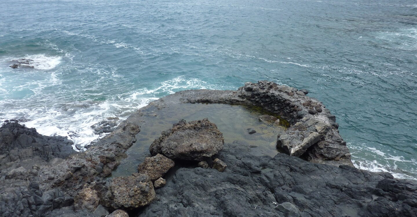 Markant geht es auf eine am Wegesrand stehende Lavamauer zu, bis der Weg sich um die Landspitze Richtung (05) El Muelle De Lorenzo (33 m) neigt. In der zweiten Hälfte des 20. Jahrhunderts begannen der Anbau und die Vermarktung von hauptsächlich Tomaten und weiteren Gemüsesorten im sehr fruchtbaren Tal von Hermigua. Zunächst musste jedoch die adäquate Infrastruktur zum Abtransport der Güter geschaffen werden. Aus diesem Grund entstanden die Verladestationen El Muelle De Lorenzo. Dieser neue Pier erleichterte zwar die Verschiffung von Fracht, erbrachte jedoch nicht die gewünschten Bruttoregistertonnen. Woran lag es? Wie wir heute auf unserer Wanderung erleben werden, waren enorme Anstrengungen nötig, um die Fracht zum Anleger zu transportieren - das war auf Dauer nicht rentabel. Heutzutage findet man nur noch die Ruine des Büros der Firma Fyffes und die Reste des alten Pier De Lorenzo vor. Wir gehen auf dem gleichen Weg zurück.