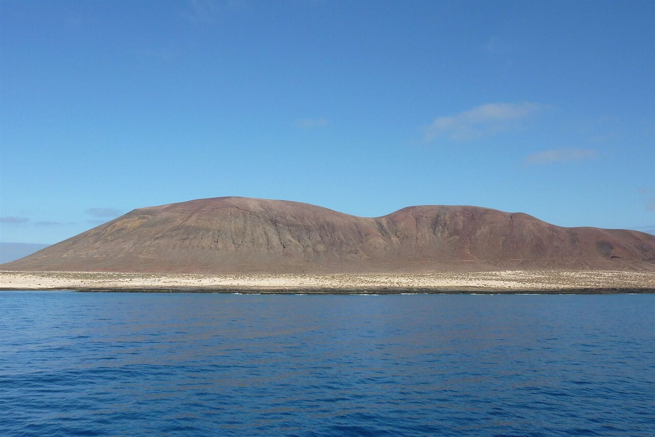 Es folgt ein landschaftlich sehr schöner Weg. Auf der rechten Seite sieht man die Nordspitze von Lanzarote mit den steil abfallenden Klippen des Famara Gebirgsmassivs. Links auf La Graciosa sind die 04 beiden Vulkane 3 m Agujas Grandes (267 m) und Agujas Chicas (257 m) zu sehen.