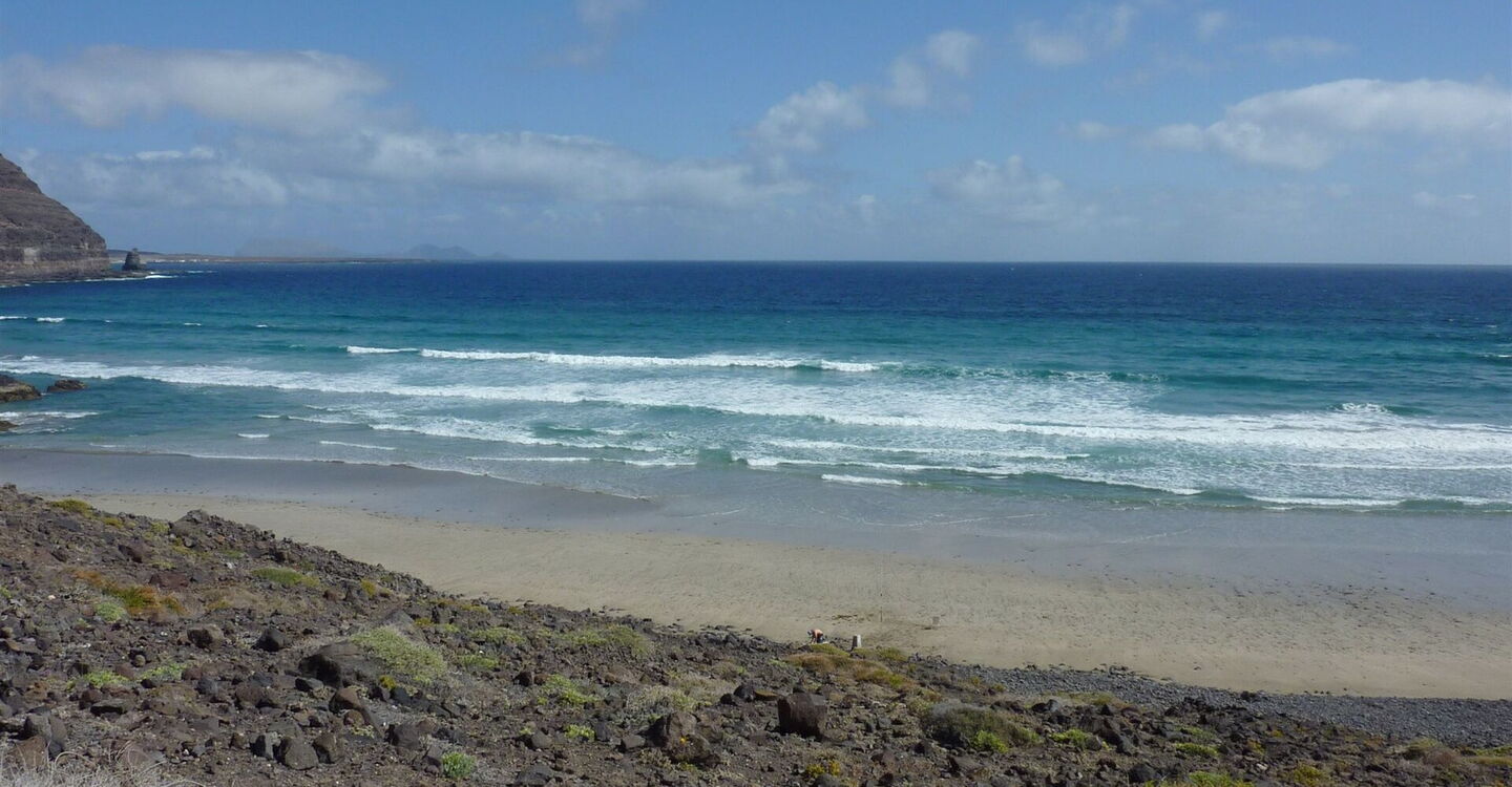 Der wenig besuchte und 300 Meter lange Strand ist je nach Wasserstand zwischen 5 und 30 Meter breit. Bei Ebbe kommt der goldene Sand zum Vorschein. Bei Flut besteht der Playa de la Canteria zum größten Teil aus Steinen und Felsen. | Der Strand ist sehr gut erreichbar. Zugang: Auto. | Ohne Surfboard geht bitte nicht weiter als bis zu den Hüften in das Wasser! Da die Brandung nach rechts abfließt, erfrischt Euch im Meer auf der linken Strandseite. Eine große Welle könnte Euch schnell in Richtung Felsen treiben. Das Hinweisschild Playa Peligrosa«, Gefährlicher Strand«, steht nicht ohne Grund dort. | Verschiedenes: romantischer, sauberer Strand mit sauberem Wasser, im Winter teilweise Schatten durch die hohen Klippen, mit dem Buggy erreichbar, FKK möglich, Hunde nicht erlaubt, kein Rollstuhlzugang vorhanden. | Toiletten, Duschen, Sonnenstühle und Sonnenschirme sind nicht vorhanden. | Aktivitäten: Wegen der hohen Wellen besonders bei Wellenreitern beliebt. | Tipp: In den Wintermonaten empfiehlt sich ein Besuch um die Vormittags- bzw Mittagszeit, da die Sonne am frühen Nachmittag hinter den steilen Klippen des Famara Gebirgsmassivs verschwindet und der Strandabschnitt dann im Schatten liegt. Besuchen Sie den Strand auf keinen Fall bei starkem Wind. Planen Sie Mithilfe der Webseite gezeitenfisch.com einen Tag mit Niedrigwasser ein, um den Strandabschnitt nutzen zu können. |