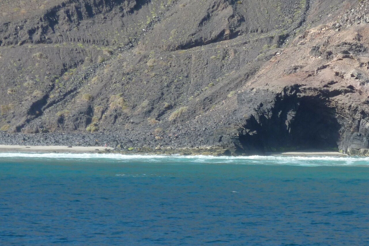 Bei extrem niedrigem Wasser und zudem noch geringem Wellengang gibt es links vom Strand eine Höhle zu erkunden. Um zur 05 Höhle 0 m zu gelangen, muss man über Felsen klettern. Bitte die Höhle zur eigenen Sicherheit nur bei sehr geringem Wellengang besichtigen!