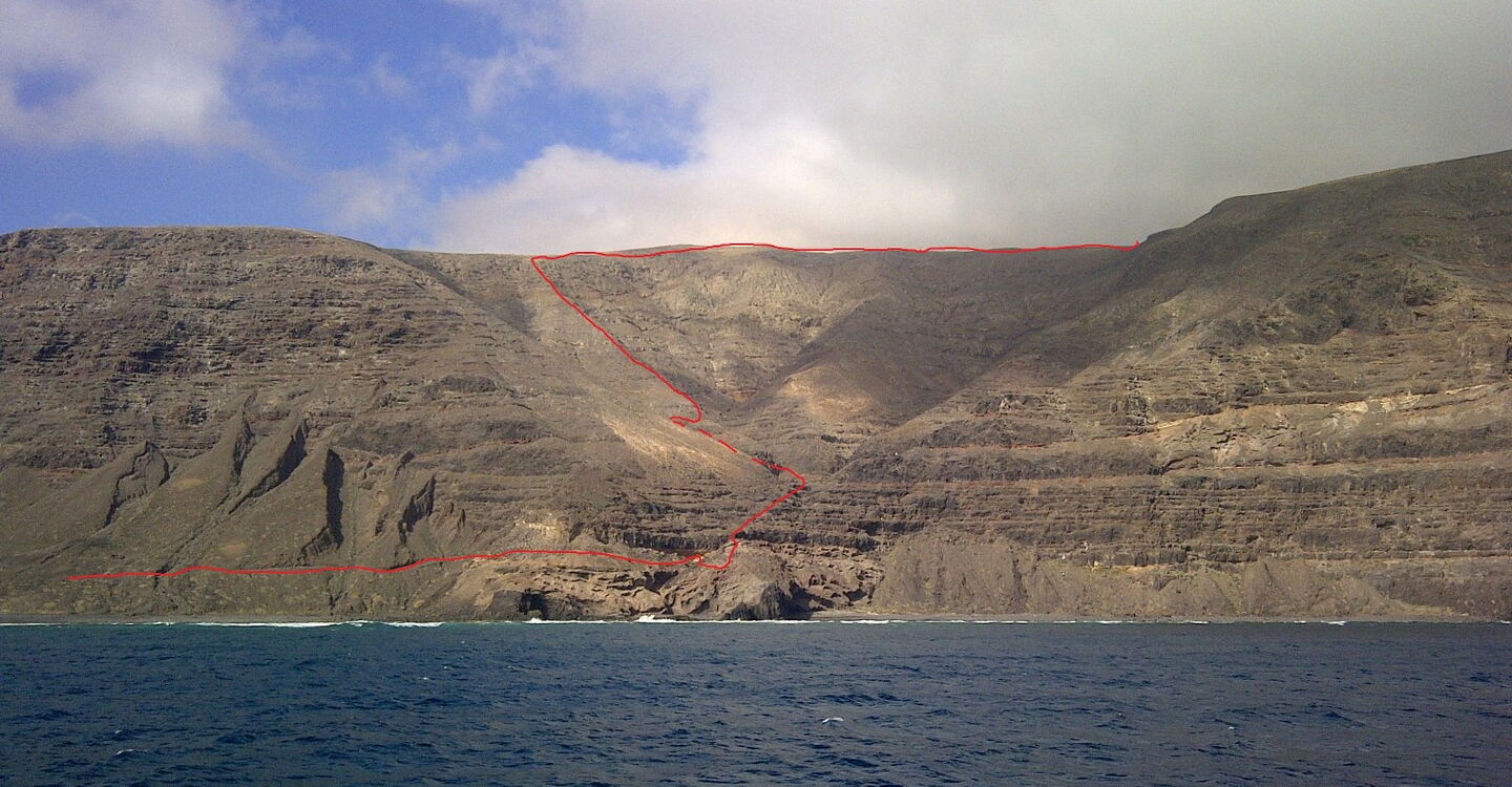 Der Gebirgszug Risco de Famara ist ein 15 km langer und bis zu 670 m hoher Bergrücken parallel zur Küste. Am nördlichsten Zipfel von Lanzarote fallen die Klippen nahezu senkrecht bis zum Playa de la Canteria ab. Zwei markante Schluchtausläufer fräsen sich durch das 12 Millionen Jahre alte Massiv. Diese erste dokumentierte Tourenbeschreibung ist die Route vom Playa de la Canteria durch einen der beiden Schluchtausläufer und weiter durch die Nordostflanke des Gebirgszugs bis hinauf zum Mirador del Rio. Auf einem alten Handelspfad geht es zurück zum Ausgangspunkt.
