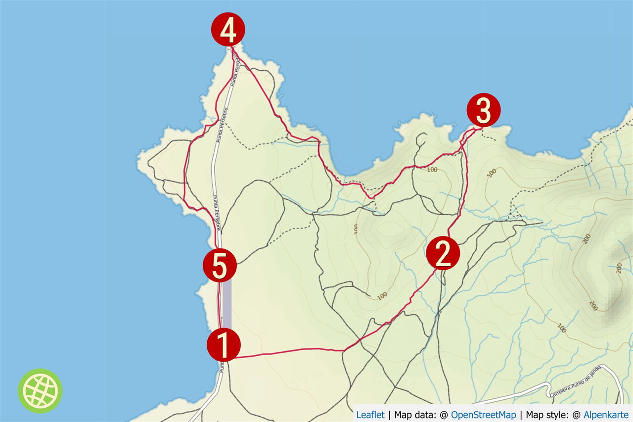Wir gehen auf dem Küstenpfad in westliche Richtung bis zum (04) Leuchtturm (34 m) Punta Pesebre, der zwar sehr klein, aber bereits aus der Ferne gut zu erkennen ist.
