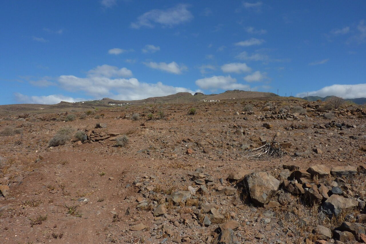 Nach einer ausgiebigen Pause mit 360°-Panoramablick über den gesamten Süden der Insel gehen wir die 320 m zurück zu der Wegkreuzung mit dem Abzweiger nach Targa. An dieser Stelle nehmen wir aber nicht links den Hinweg, sondern gehen rechts Richtung (04) Antoncojo (537 m). Unterhalb des Roque Redondo steigen wir in das Barranco de los Cocos ab und laufen auf einem wildromantischen Weg, der mit Palmen gesäumt ist, mal im Barranco mal neben dem Barranco, bis wir die Ortschaft Antoncojo erreichen. An der folgenden Asphaltstraße gehen wir rechts bergauf und nach weiteren 100 m links. Am Ende der Straße, welches wir nach weiteren 250 m erreichen, gehen wir geradeaus weiter.