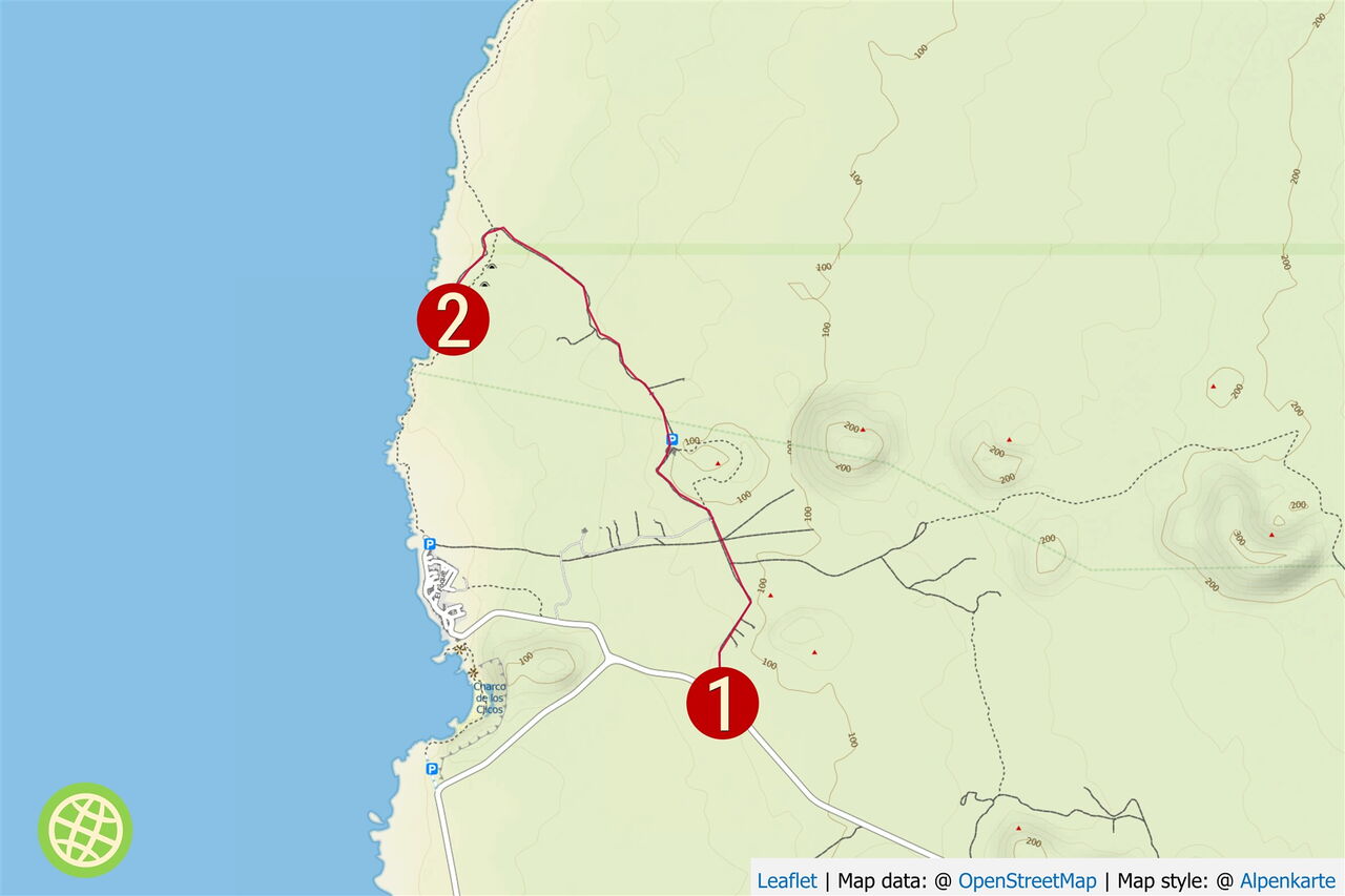 Die einfach zu begehende Piste führt durch den sehr beeindruckenden Naturpark Timanfaya. Werden Sie auf dieser Wanderung Zeuge, wie das Leben neu aufblühen kann, nachdem im 17. und 18. Jahrhundert glühende Lavaströme alles ausgelöscht hatten. Untergrund: Eine Schotterpiste, die zum Ende zunehmend schlechter wird. Als Ausrüstung empfehlen wir Sonnenhut, Sonnencreme und ausreichend Verpflegung. Einkehr: Auf der Wanderung gibt es keine Einkehrmöglichkeit. Möchte man gut Fisch essen, so ist man im Restaurant Bogavante in El Golfo sehr gut aufgehoben. Diese Wanderung kann man zu jeder Jahreszeit unternehmen. Wer nicht wandern möchte, kann mit dem Pkw auf einer Schotterpiste bis fast an den Strand fahren. GPS: N29 13.500 W13 27.801, GPS: 29.216483 -13.442233.