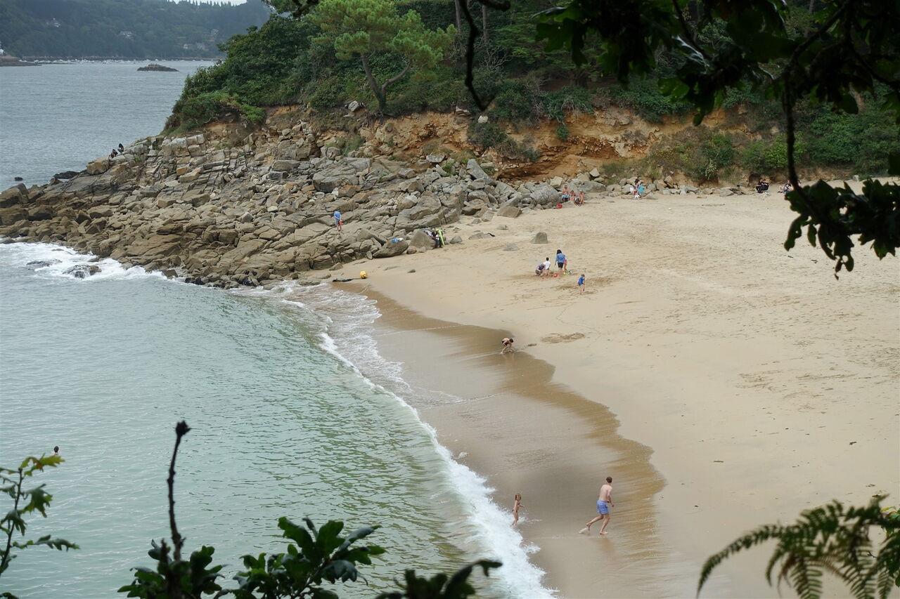 Der Rundweg um die facettenreiche Landspitze Pointe du Dourven ist aus verschiedensten Gründen sehenswert. Zum Auftakt machen wir einen Streifzug durch das Hinterland. Es geht vorbei an schönen Anwesen und an einem Bachlauf entlang. Dann beginnt die Bädertour, auf der wir an versteckten kleinen romantischen Sandbuchten vorbeikommen, bis der Pfad unterhalb einer Parkanlage an alten Zedern, Pinien und sogar Eukalyptusbäumen vorbeiführt. An der Pointe du Dourven genießen wir die atemberaubende Fernsicht. Ein leichter Spaziergang erlaubt Zeit für Gefühle.