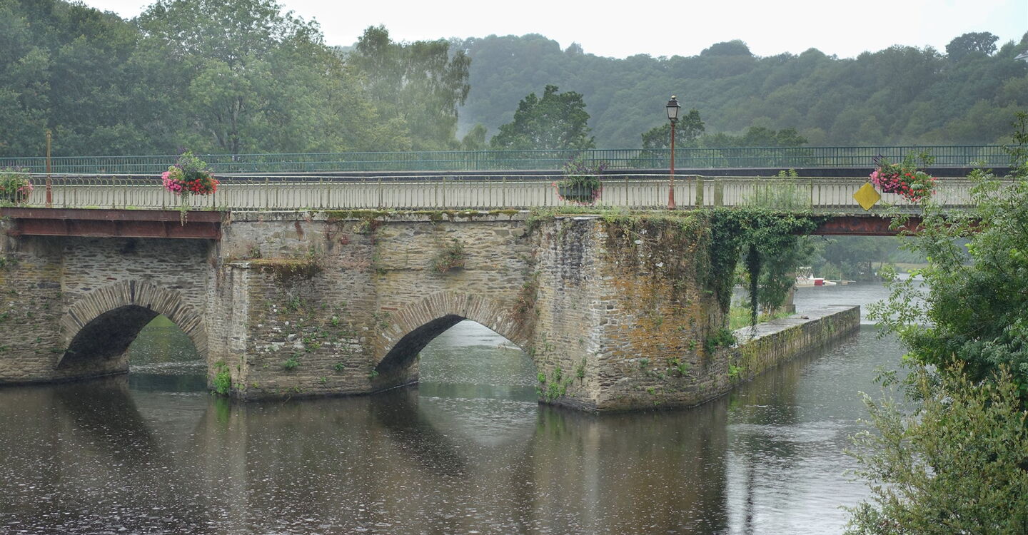 Bis zum 19. Jahrhundert schlängelte sich der Flusslauf der Aulne durch das Tal bei Châteauneuf-du-Faou. Als sich dann die Schieferindustrie in der Bretagne entwickelte, wurde der Fluss kanalisiert. So entstand ein praktikabler Transportweg, ein Kanal mit 360 km Länge von Nantes nach Brest mit sagenhaften 236 Schleusen. In einem wunderschönen Tal mit altem Baumbestand wandern wir entlang der Schleifen des Kanals und überqueren diesen auch an einer der Schleusen. Wir entdecken die 6 Bögen umfassende Steinbrücke Pont du Roy – die eine seit Urzeiten genutzte Furt ersetzte – und eine Kapelle aus dem 16. Jahrhundert. Eine beeindruckende Kulturlandschaft, die Geschichten über die Region erzählt.