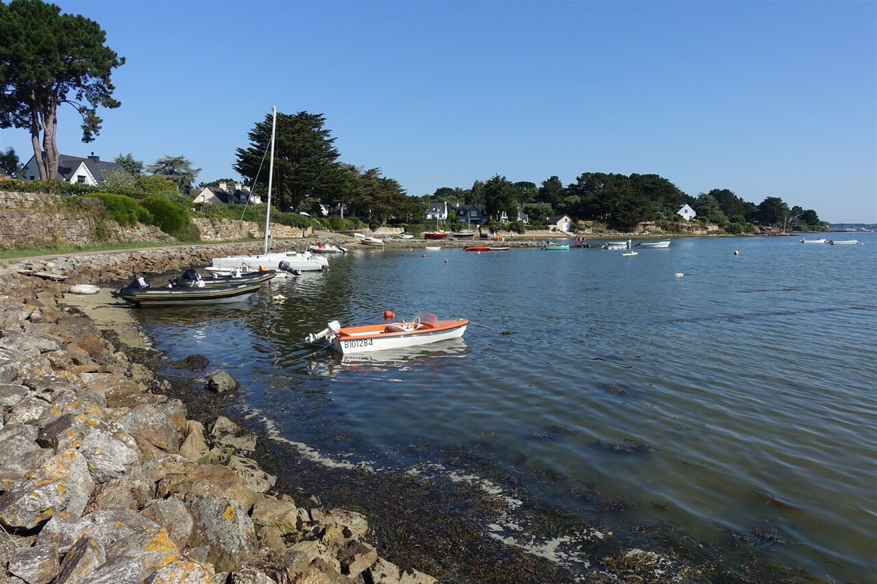 Während wir in Richtung des Landesinneren gehen, ignorieren wir einen rechten Abzweiger mit gelben Hinweisschildern. Bei einem Campingplatz angekommen, erreichen wir die dritte Bucht. Der weiterführende Pfad verläuft durch ein kleines Waldstück, bei Ebbe kann man ab hier auch über Schlick und kleine Steine direkt am Ufer entlanggehen. Hinter weiteren großen Pinien erreichen wir die dritte Landspitze, die 03 Pointe de Kerners (6 m). Hinter einer kleinen Bucht geht es dann auf einem Holzbohlenweg durch ein kleines Waldstück. Zwischenzeitig steigen wir zu einer Slipanlage herunter, wir kommen an Liegeplätzen von Segelschiffen und einem Campingplatz vorbei.