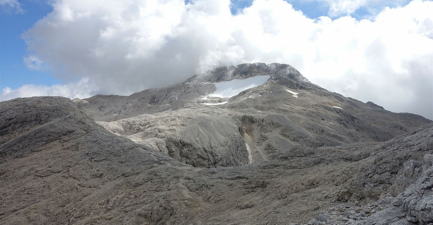 Von dem 01 Rifugio di Rosetta (2.581 m) entfernen wir uns in östliche Richtung auf dem breiten Wanderweg. Den sofort folgenden linken Abzweiger zum Rifugio Mulaz (siehe Tour 42) ignorieren wir und bei dem nachfolgenden Wegweiser folgen wir halb rechts dem abzweigenden Wanderweg 709 zum Passo di Pradidali Basso. Ein Pfad ist auf der karstigen Palahochfläche nur schwer auszumachen. Steinmännchen und weiß-rote Markierungen helfen bei der Orientierung, die bei schlechter Sicht umso schwieriger wird.