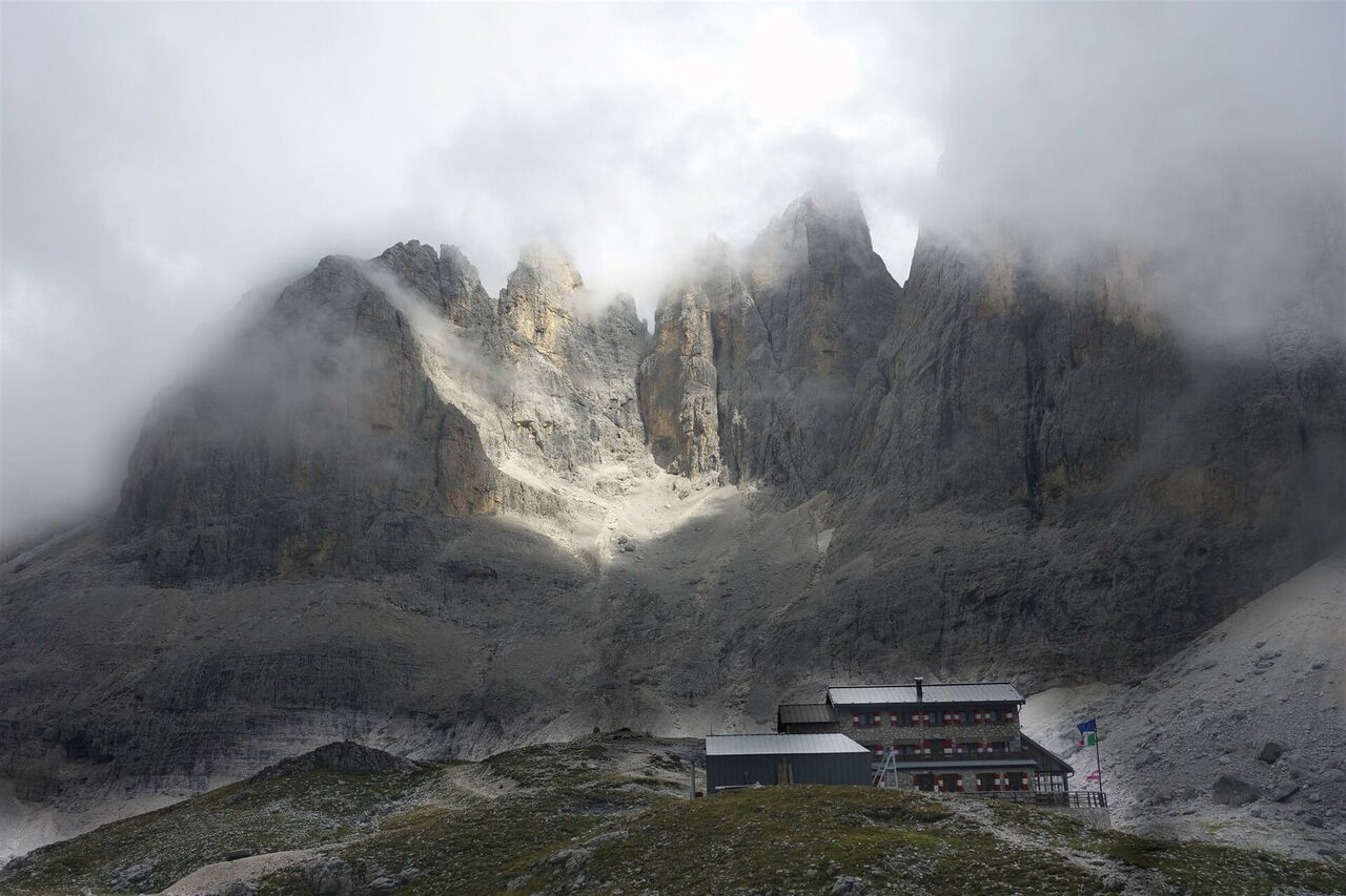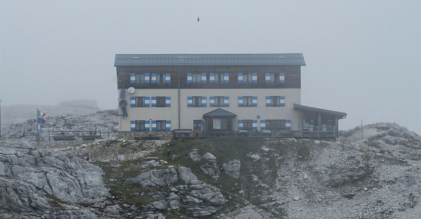 Von dem 01 Rifugio di Rosetta (2.581 m) folgen wir dem leicht bergab führenden Pfad in südliche Richtung. Dieser ist auch ausgeschildert zum Passo di Ball und Rifugio Pradidali – Wegnummern AV 2 und 702.