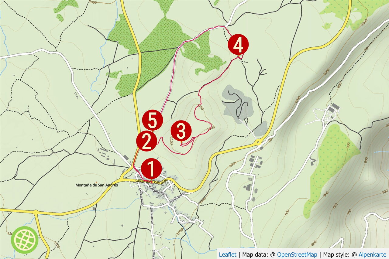 Prinzipiell eine einfache Wanderung, wäre da nicht der steile Abstieg vom Vulkan. Die vorgeschlagene Variante umläuft den steilen Abstieg. Art des Weges: 20 % weglos, 40 % Piste und 40 % Straße. Zusatzausrüstung: Wanderstöcke für den extrem steilen Abstieg vom Vulkan. Einkehrmöglichkeit: keine auf der Wanderung, aber in San Andres gibt es Bars und Restaurants. Beste Wanderzeit: Frühjahr, Sommer und Herbst. Erlebnis: einzigartige Vulkanbäume und eines der ältesten Dörfer auf El Hierro. Variante: Zweigt man beim Wegpunkt nicht nach rechts ab, sondern geht weitere 430 m auf der Piste und zweigt dort rechts ab, so trifft man wieder auf die beschriebene Route.