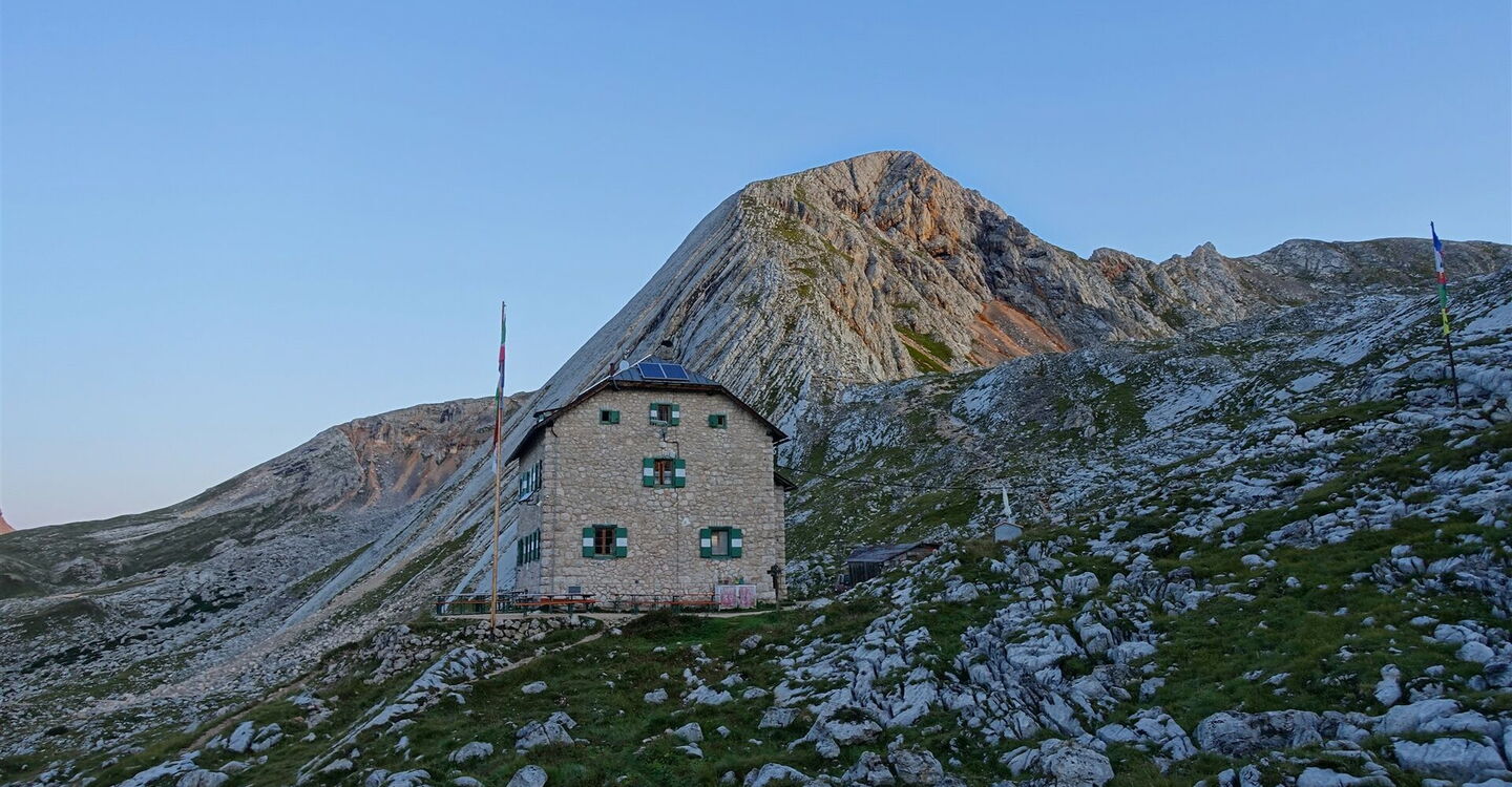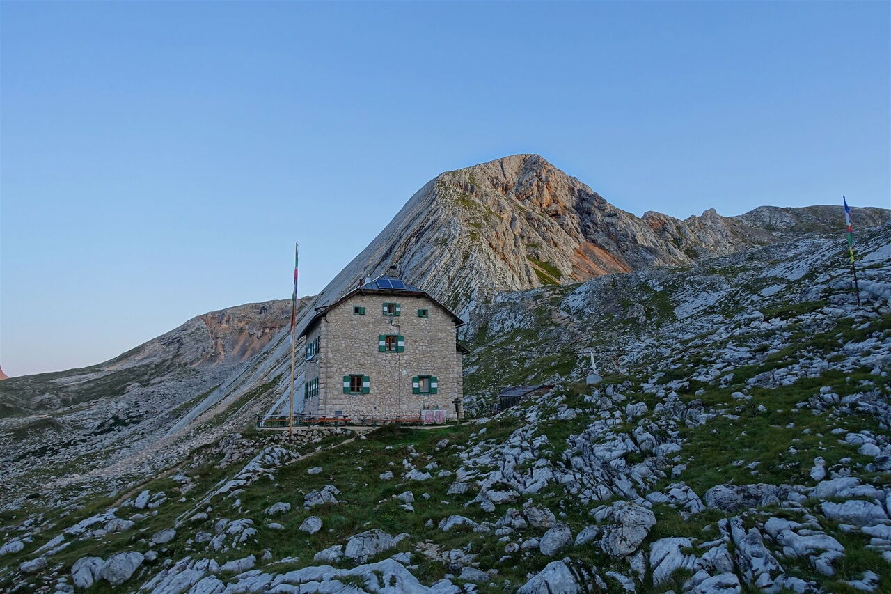 Von der 01 Seekofelhütte (2.327 m) marschieren wir in nordwestlicher Richtung ca. 250 m auf dem Pfad bergauf.